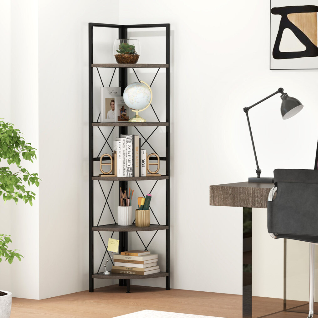 ● Optimized Space Usage: This 5-tier bookshelf features right angle design that maximizes space utilization and fits snugly into corners. Additionally, this 63" tall corner stand provides ample vertical storage without taking up much floor space.
