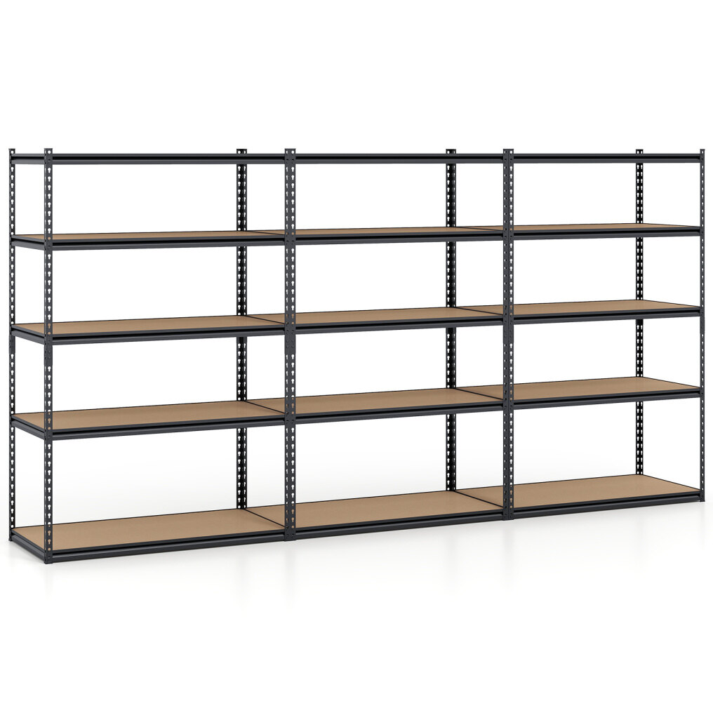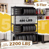 ● 2200 LBS Powerful Weight Support: This heavy-duty garage shelving unit holds up to 440 lbs per tier, 2200 lbs total. Moreover, the reinforced support ribs under each shelf reduce sway for stable storage. 2 anti-toppling devices add safety when fully loaded.