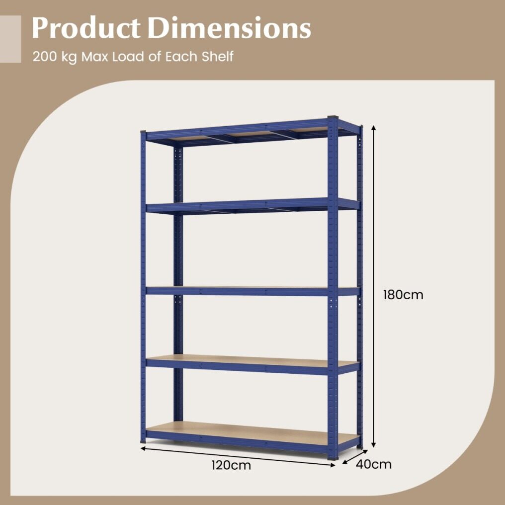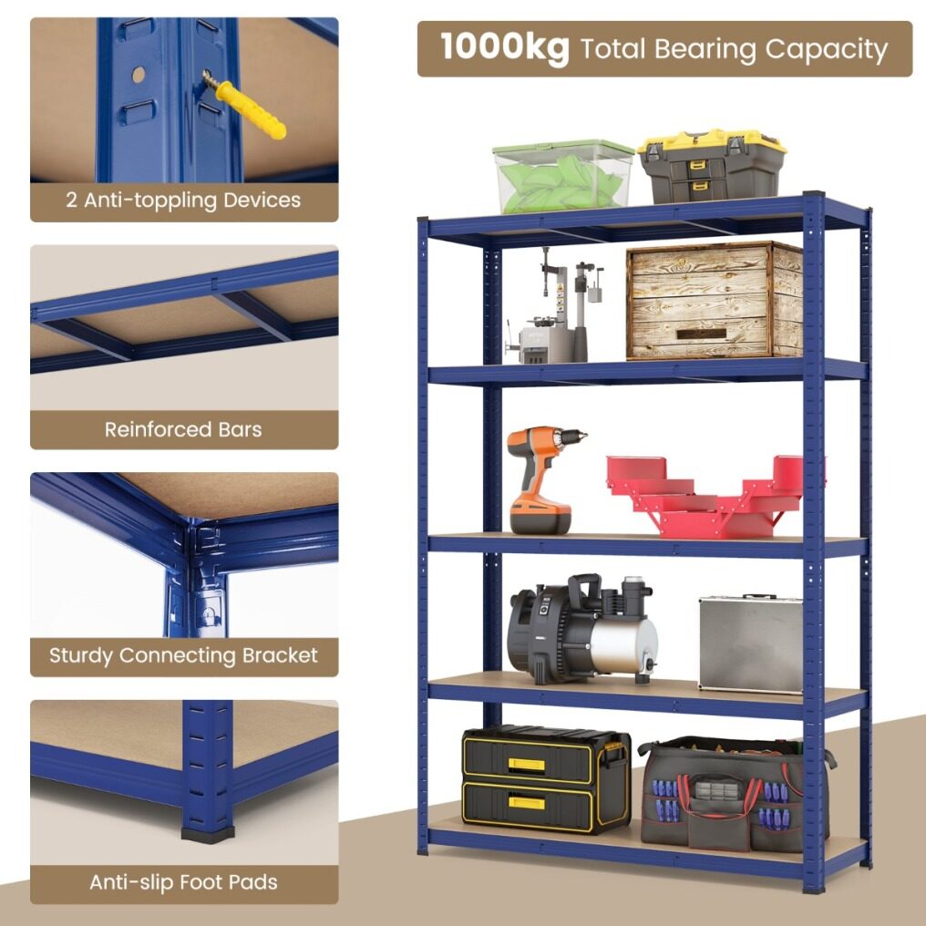 5-Tier Heavy Duty Metal Shelving Unit with 2200 LBS Total Load Capacity-Blue