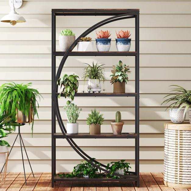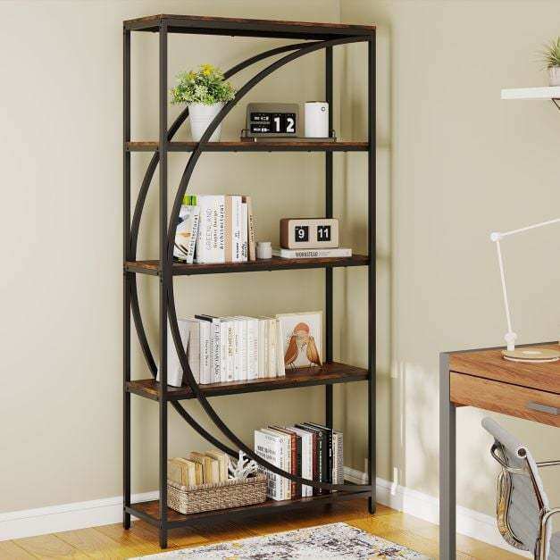 Ample Storage & Display Space: With 5 open storage shelves, the etagere bookcase helps keep your home tidy while allowing for easy access to your items. From books and potted plants to handicrafts and photos, everything finds a perfect spot on this tall display shelf.