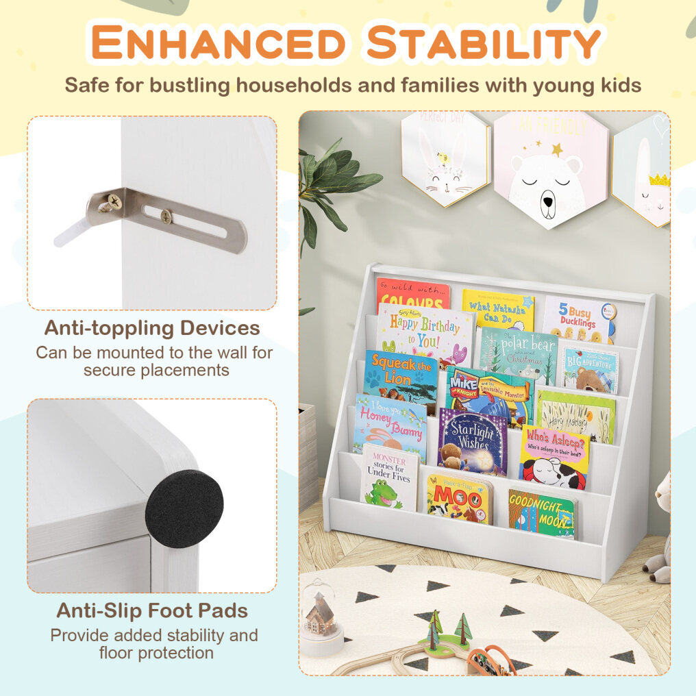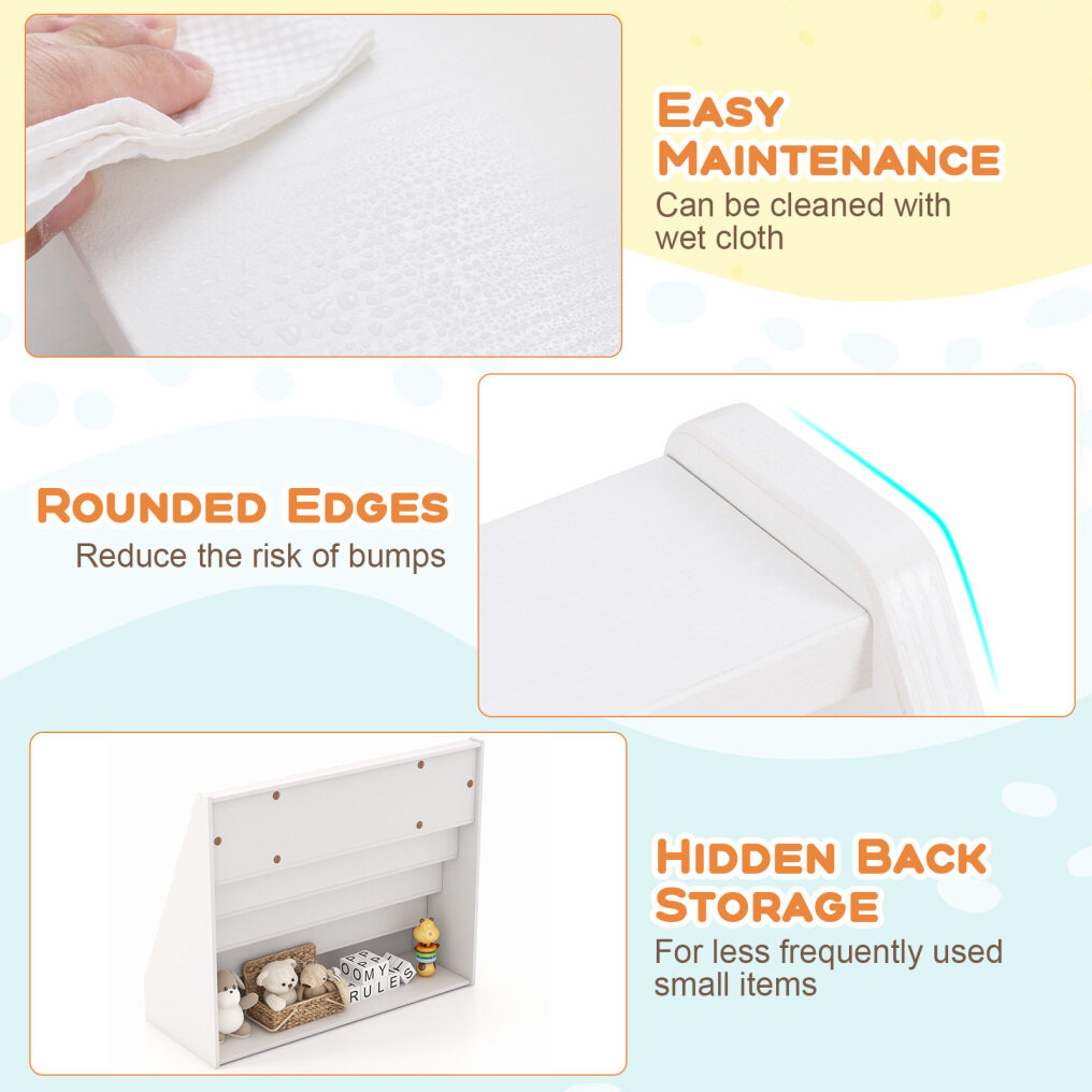 Enhanced Stability: For secure placements, this kids' bookcase can be mounted to the wall through included anti-toppling devices. It also comes with anti-slip foot pads, which provide added stability and floor protection, enhancing its use in busy modern families with pets or young kids.