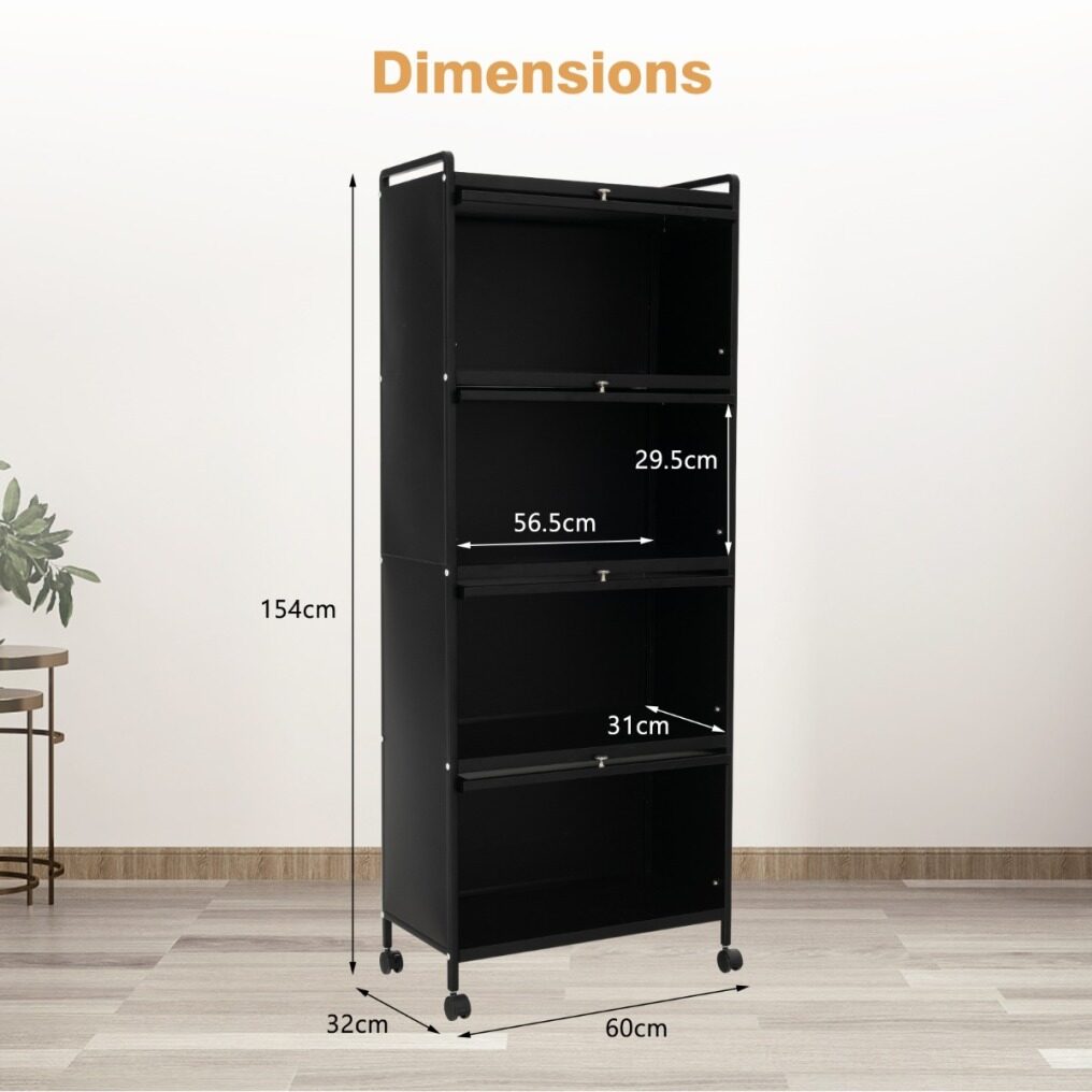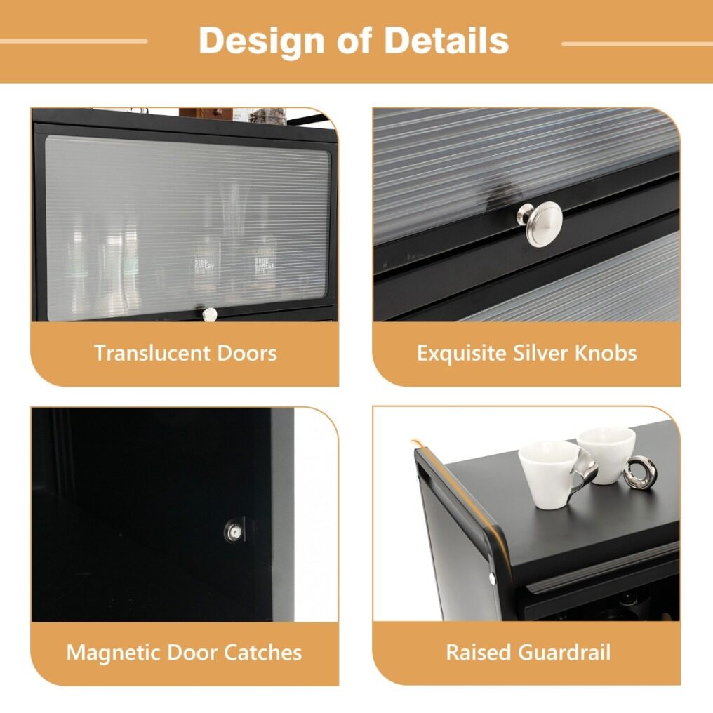● Versatile Storage Space: The rolling microwave stand provides you with 5-tier ample storage space, which is fitted with semi-translucent doors for dust-proof storage. Then you can keep kitchen appliances, tableware, snacks, pots and pans in order.