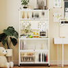 Ideal Storage Solution: The coffee bar cabinet boasts diverse storage options, including 4 top hooks, open shelves, a pegboard with 10 pegs, and 3 cabinets with doors. As such, your kitchen essentials will be neatly organized, from the cookware to tableware, roaster, coffee maker, and more.