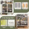● See-through Doors: The sideboard buffet cabinet features see-through doors with magnetic door catches and convenient door handles, one of which is a flip-up door. This clear design not only adds a modern touch to your kitchen decoration but also allows you to conveniently display your fine china or cookware collection.