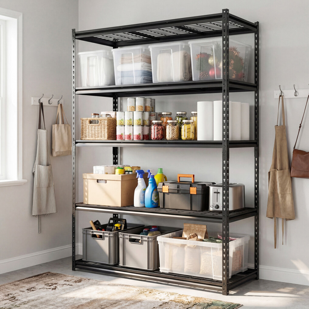 ● Added Stability & Safety: Equipped with 2 anti-tipping kits and non-slip foot pads, this heavy-duty shelf stays firmly in place and helps reduce the risk of wobbling or tipping. These thoughtful upgrades keep the unit steady for safer storage.