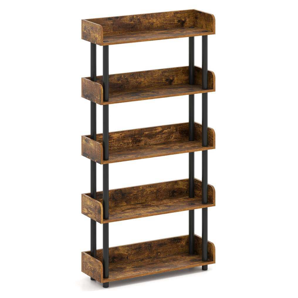 ● Ample Storage for All Your Needs: Designed with 3/4/5-tier shelving, the bookshelf provides abundant space to neatly organize your favorite books, plants, photos, etc. Moreover, its anti-falling guardrails ensure your items stay secure.
