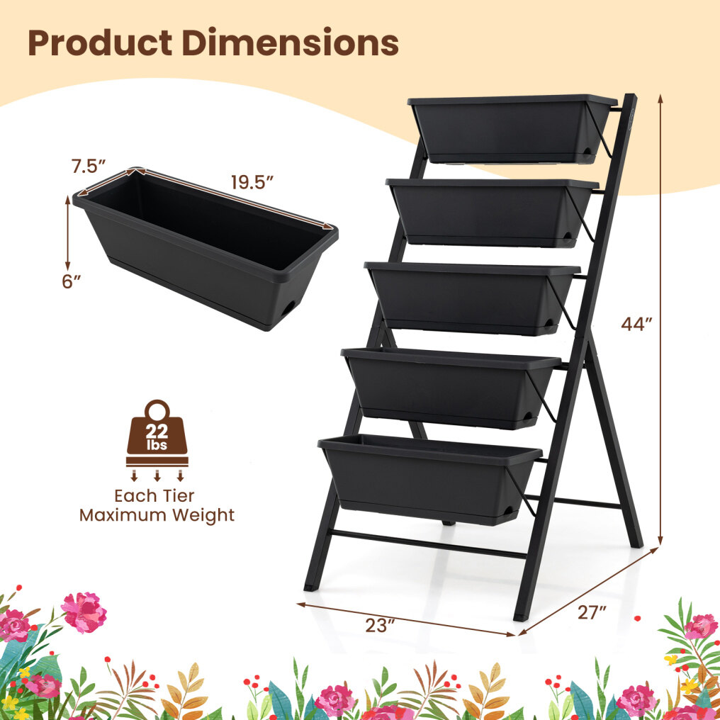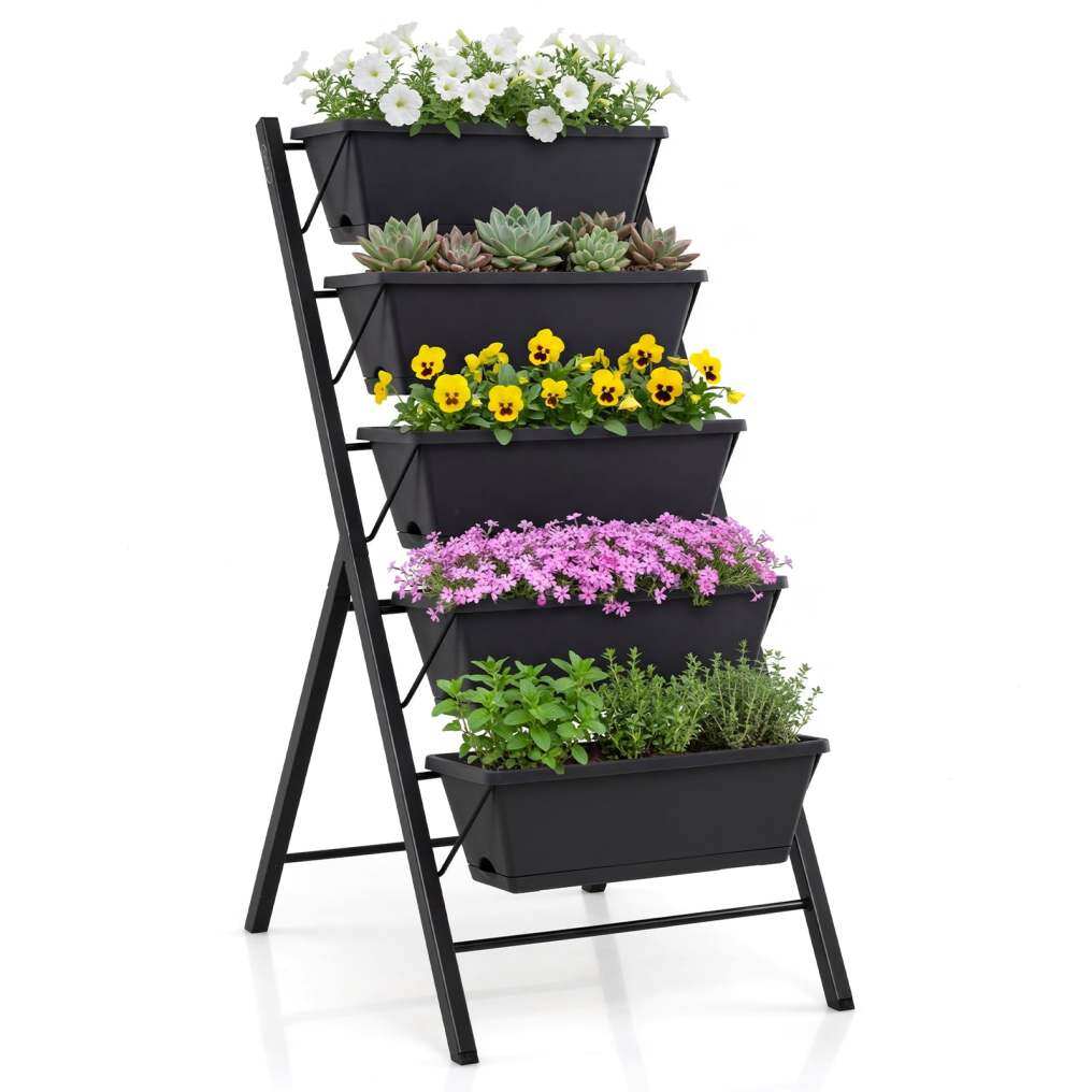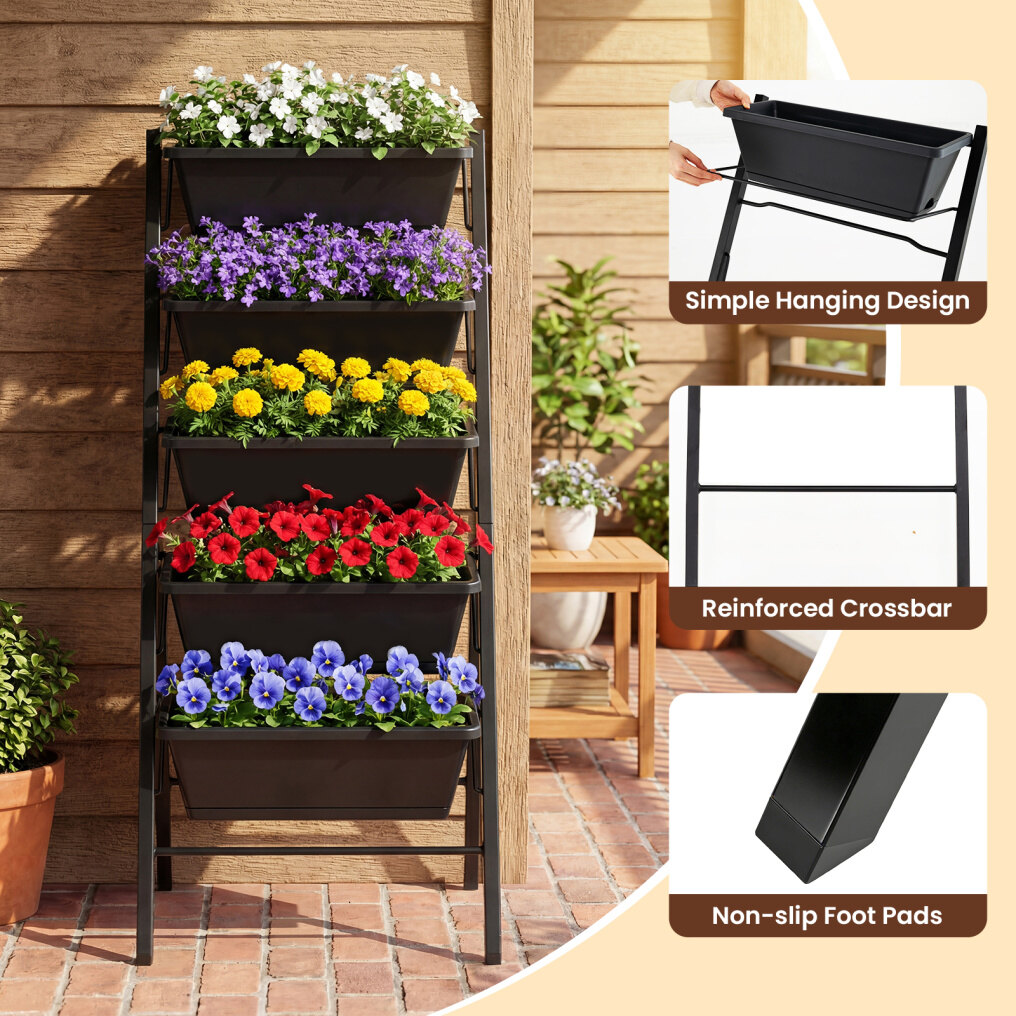 ● Long-lasting and Stable Construction: The flower boxes are made from food-safe PP plastic that's easy to maintain. A reinforced metal stand with a triangle-based support structure adds stability and strength, holding your plants securely while keeping the whole unit steady during daily use.