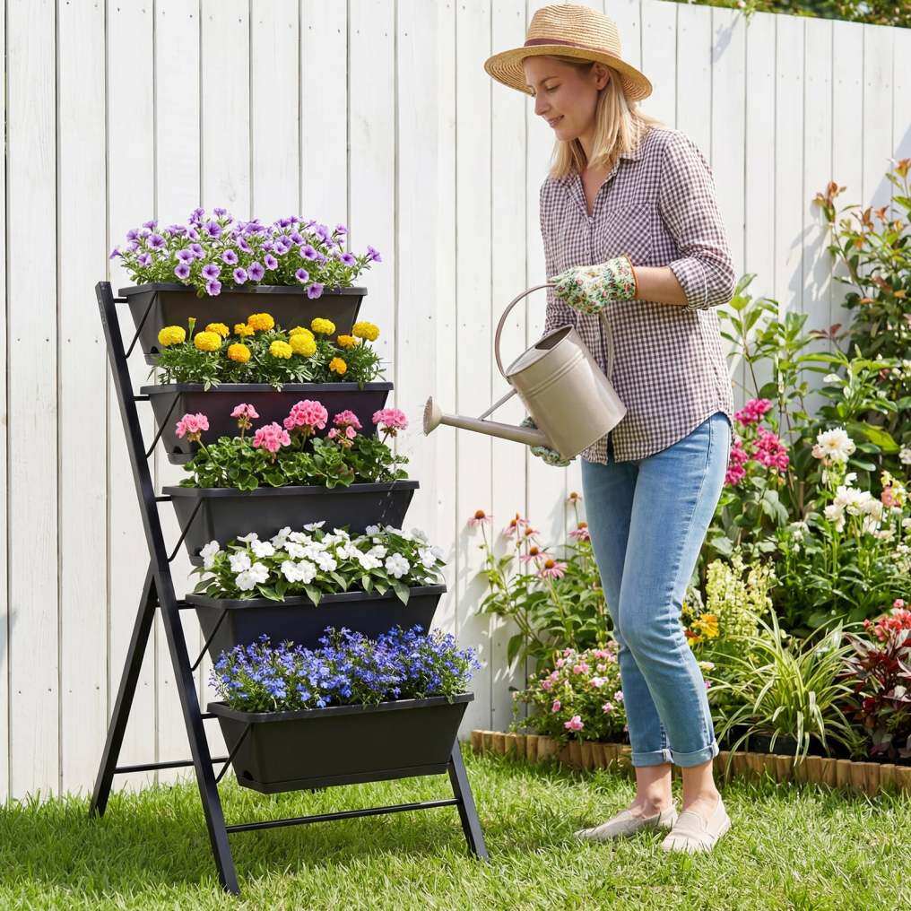 ● Space-saving Staggered Design: A tiered arrangement gives every level clear light exposure and good air circulation, supporting stronger growth. Furthermore, the vertical layout helps reduce footprint on the ground, making the raised garden bed ideal for compact patios, narrow balconies, or tight corner spaces.