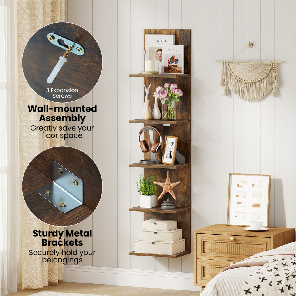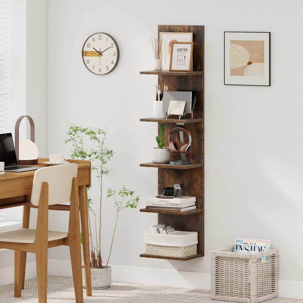 ● Spacious Multi-Tier Storage: Featuring 5 tiers with 9.5" spacing, this floating shelf unit holds books, potted plants, photo frames, decorations, curios, shoes, or lamps. It helps you organize and display your belongings elegantly and efficiently.