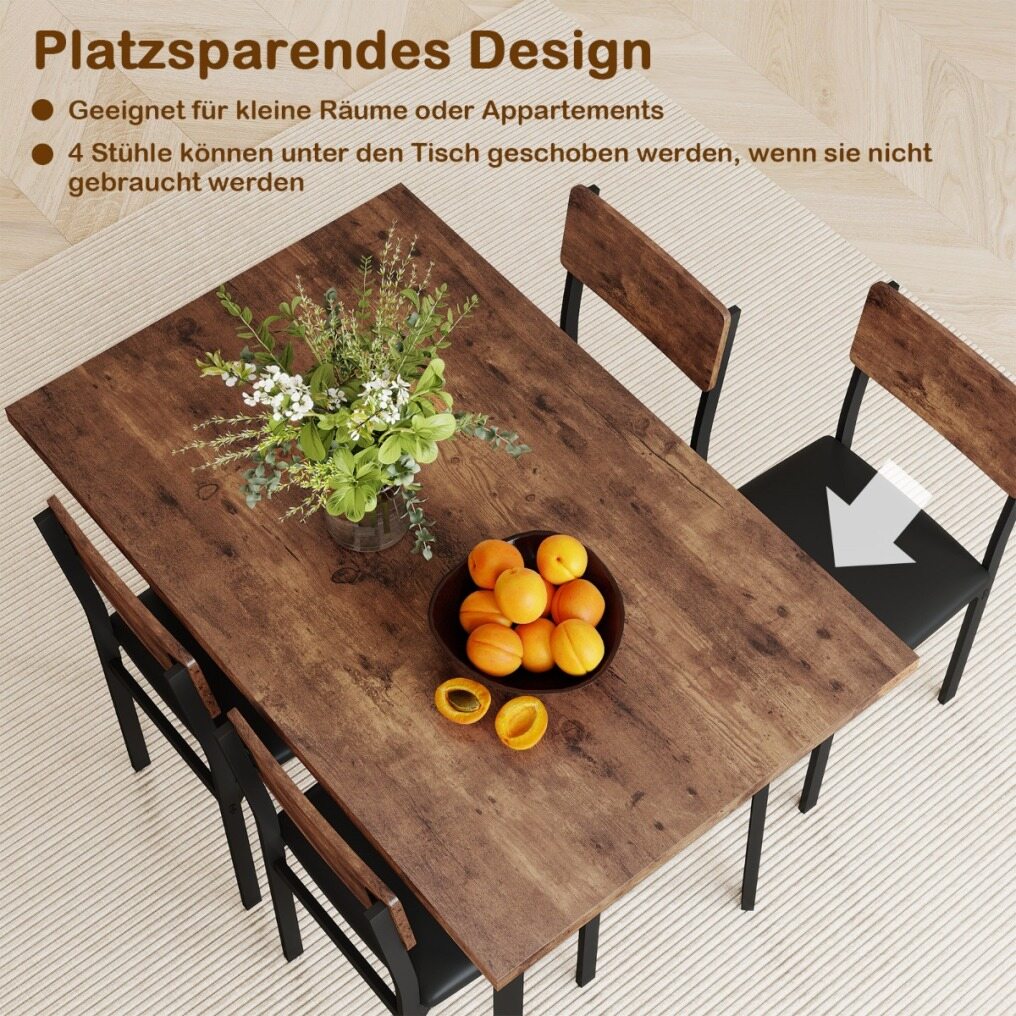 Space-saving design: Perfect for apartments or smaller dining areas – all four chairs can be completely pushed under the table when not in use. This thoughtful design creates extra space and is ideal for studios or smaller apartments.