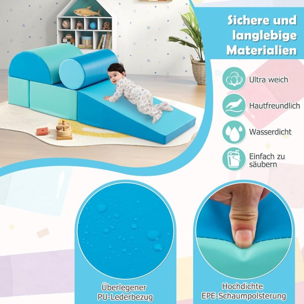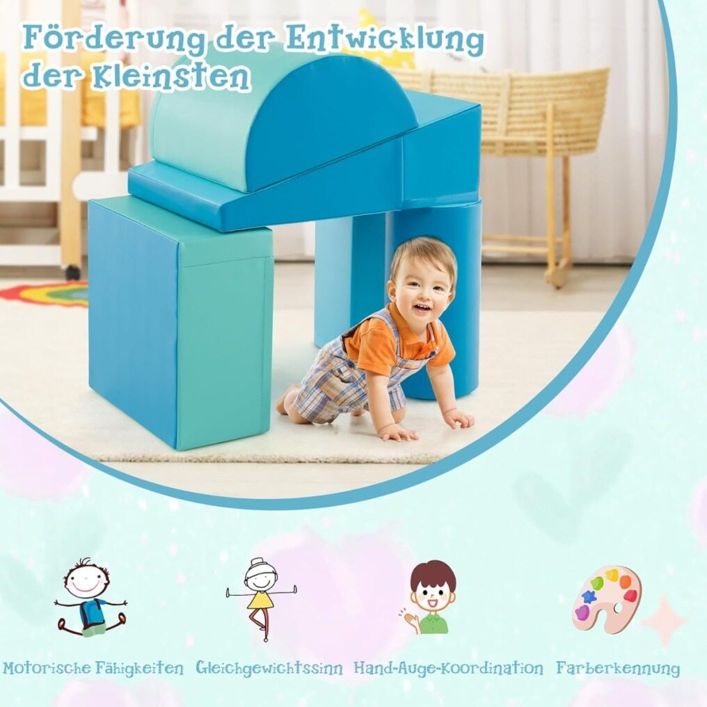 These soft building blocks are specially designed for children, providing ample space for crawling and climbing. The set consists of five differently shaped, large blocks, each made of thick sponge with a soft yet durable PU surface. This ensures children won't get hurt while playing. Children can freely combine the blocks to create various shapes, stimulating their imagination and creativity. The soft blocks can help children explore their natural instincts and develop their coordination and athletic skills. Buy these giant building blocks while supplies last.