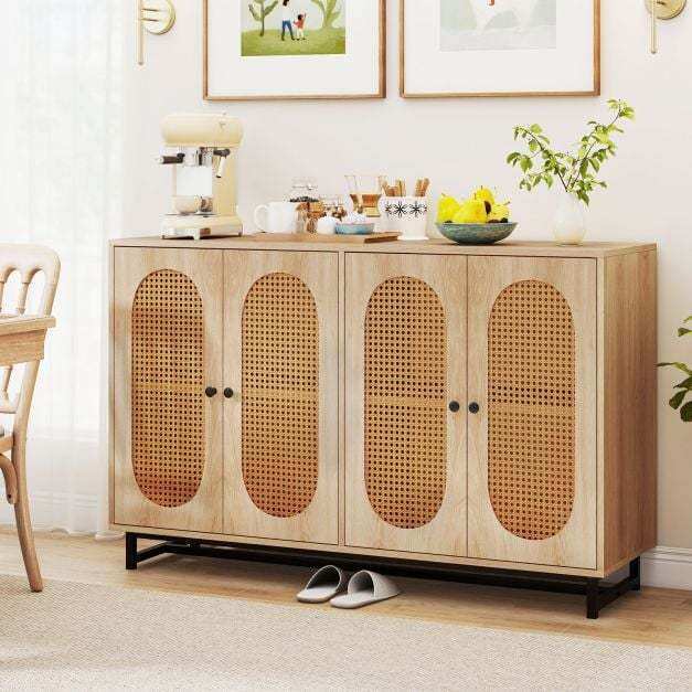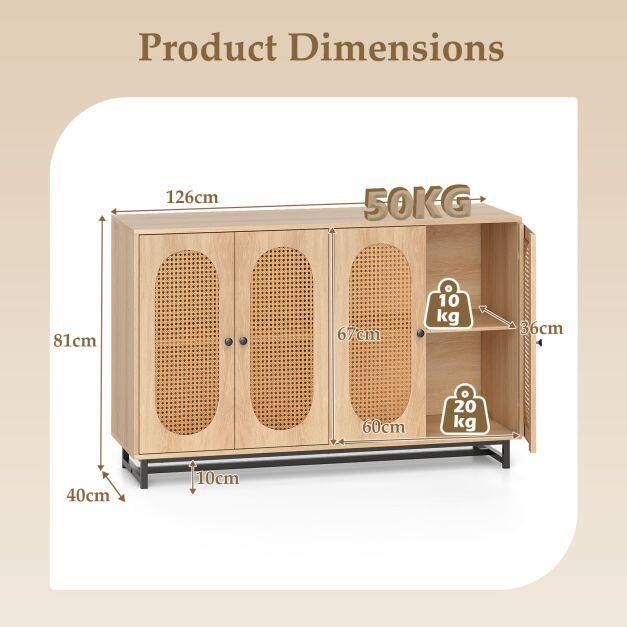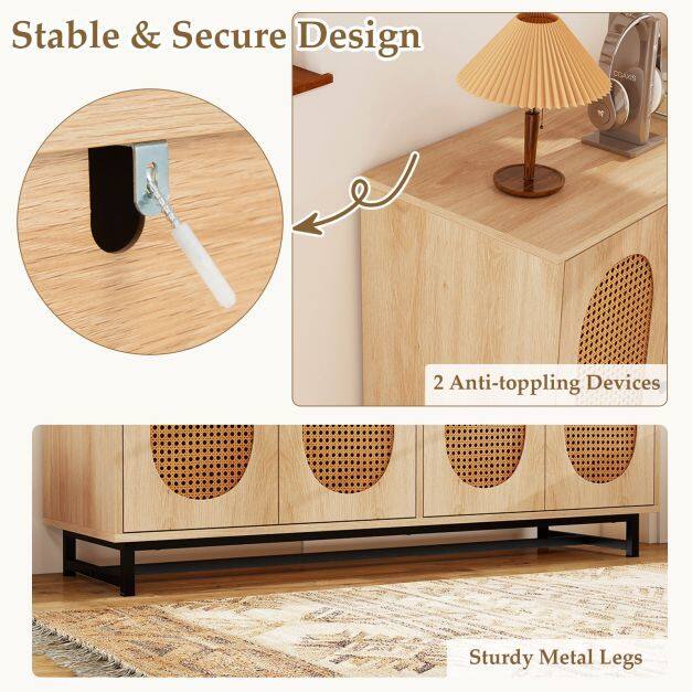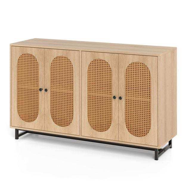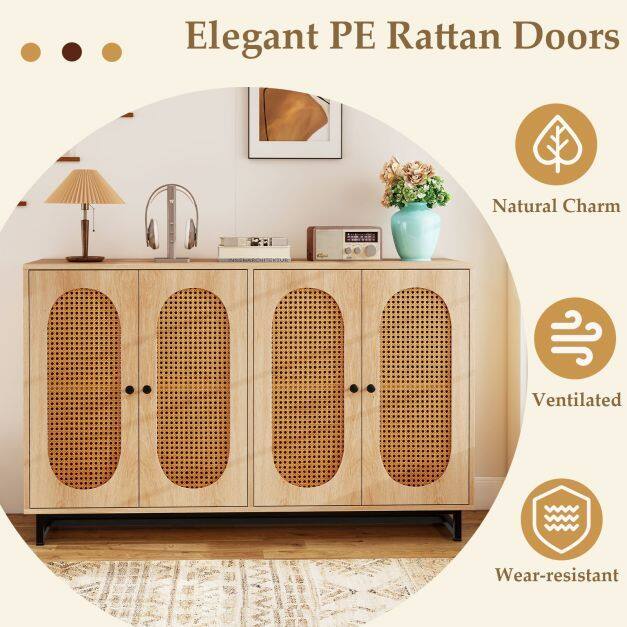 ● Elegant PE Rattan Doors: Adorned with wear-resistant PE rattan, the cabinet doors combine visual warmth with lasting durability. Plus, the woven design promotes natural airflow, helping to keep stored items fresh.