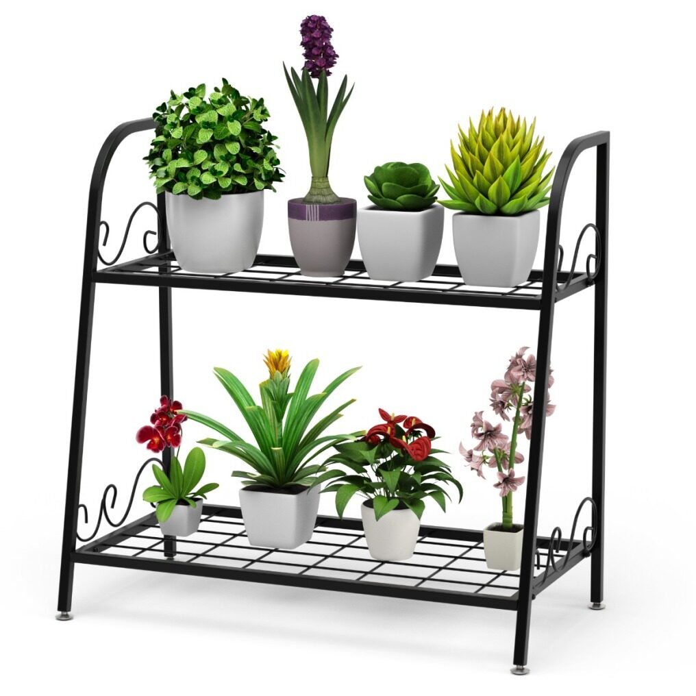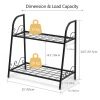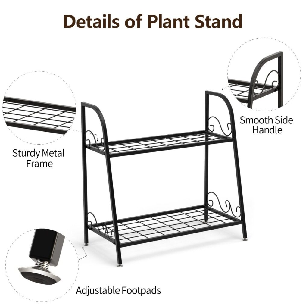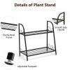 This 2-tier metal plant stand adds glamour of color to your home. Made of heavy-duty metal frame and weather-resistant powder-coated finish, this plant stand is sturdy and durable for long service life. And the slightly adjustable footpads add additional stability and protect the floor from being scratched. 2-tier design provides enough space to place various sized plants and it is also suitable for holding a variety of items, such as books, decorations, shoes, etc. With a simple and elegant design, this metal plant stand fits most home decorations and is suitable for the living room, balcony, garden, etc.
