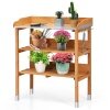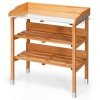 This wooden potting bench is made from natural fir wood and designed for both indoor and outdoor use. The spacious and smooth galvanized table top can not only put a few pots of flowers, but also facilitate your gardening works on it. Even if it gets dirty, you can simply wipe it off. It features two lower shelf and upper work station, making a great decor piece for your outdoor living area. This wooden multifunctional potted bench can place your favorite flowers for your front yard, hedge, lawn, backyard garden.