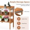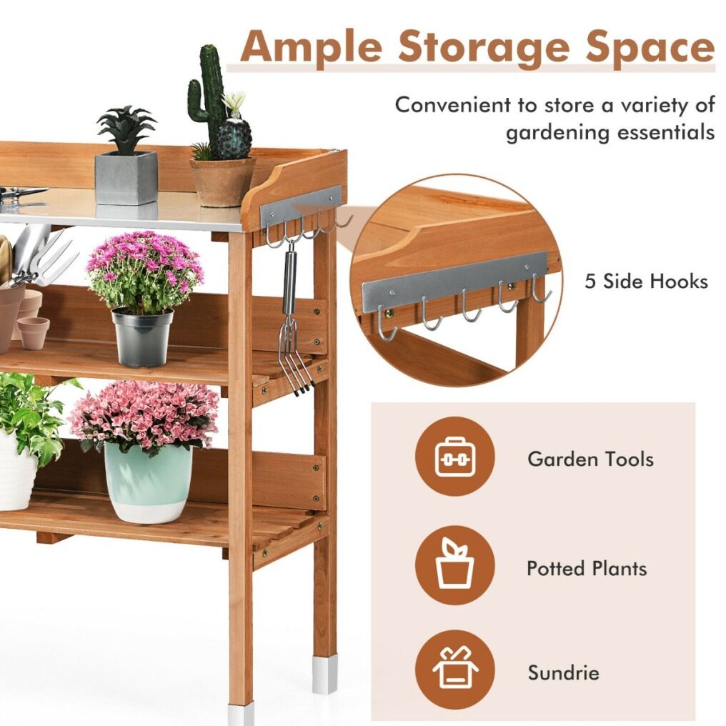 Addition Storage Shelf: This potted table is additionally designed with a lower two-tier shelf to provide enough storage space to place all your small gardening tools, and its reasonable height can also make it serve as a display stand to hold beautiful potted plants. Add 5 side hooks on the side to facilitate hanging tools.