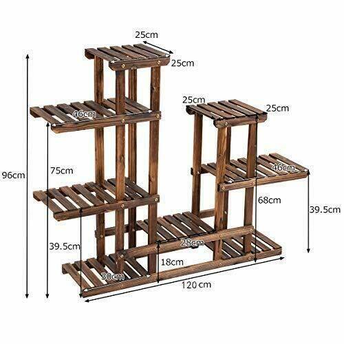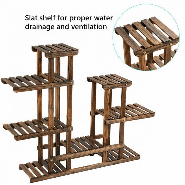 Equipped with solid and weather-resistant wood construction, the plant stand can be placed at your balcony, living room, garden or patio etc. You can not only display beautiful flowers and vigorous potted plants but also store or exhibit your photos, trophies, books and other beautiful artworks. Multi-layer high and low design makes full of space to highlight all plants. Each rack provides sufficient space to accommodate plants. And the hollow-out design makes it convenient for you to water plants.