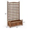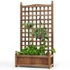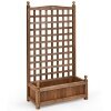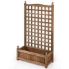 Our planter with trellis can solve your problem. This is our planter with trellis which is made of solid wood and has unique and beautiful appearance. The natural fir is durable which can be used for a long time. You don't have to worry about the wood breaking which is caused by exposure to the sun and wind. This pot has a grid design to support your climbing plants. The water outlet can be easily drained, allowing the plant to grow better. Our planter with trellis has a very large flower box that can hold a variety of plants you like. Of course, you can also grow crops. The exterior design is simple and easy to match and it is ideal to place in yard, garden, patio or balcony to be a perfect décor with many of your favorite plants. Our planter is definitely superior in quality.