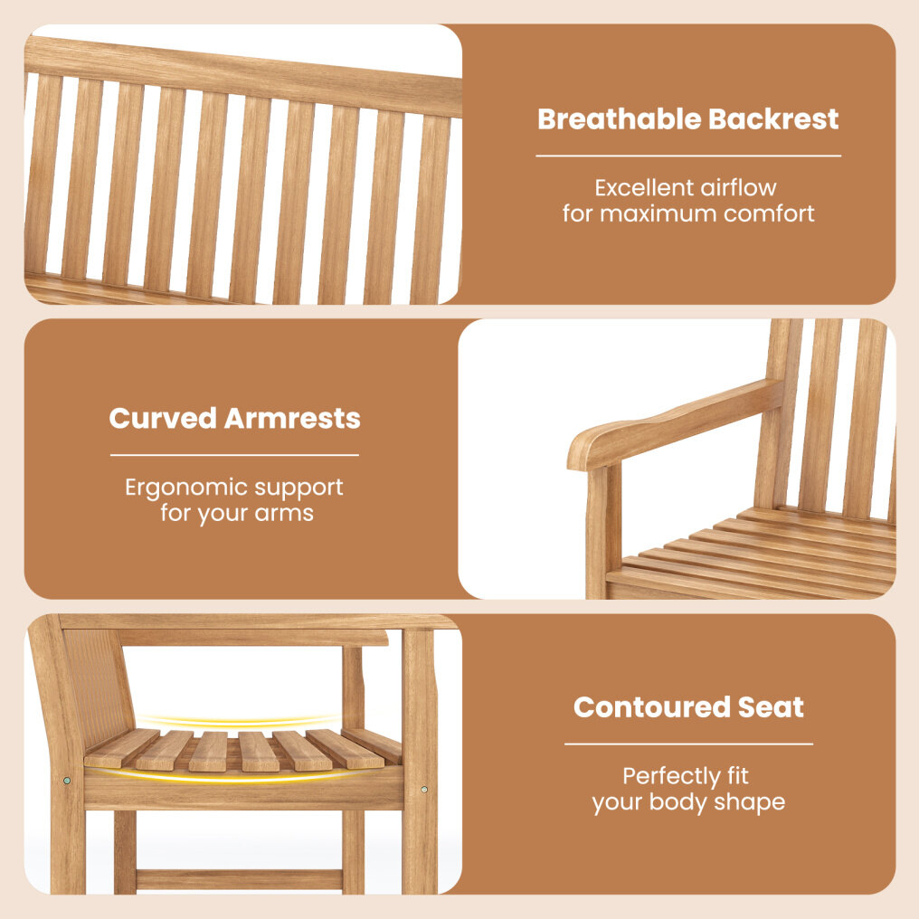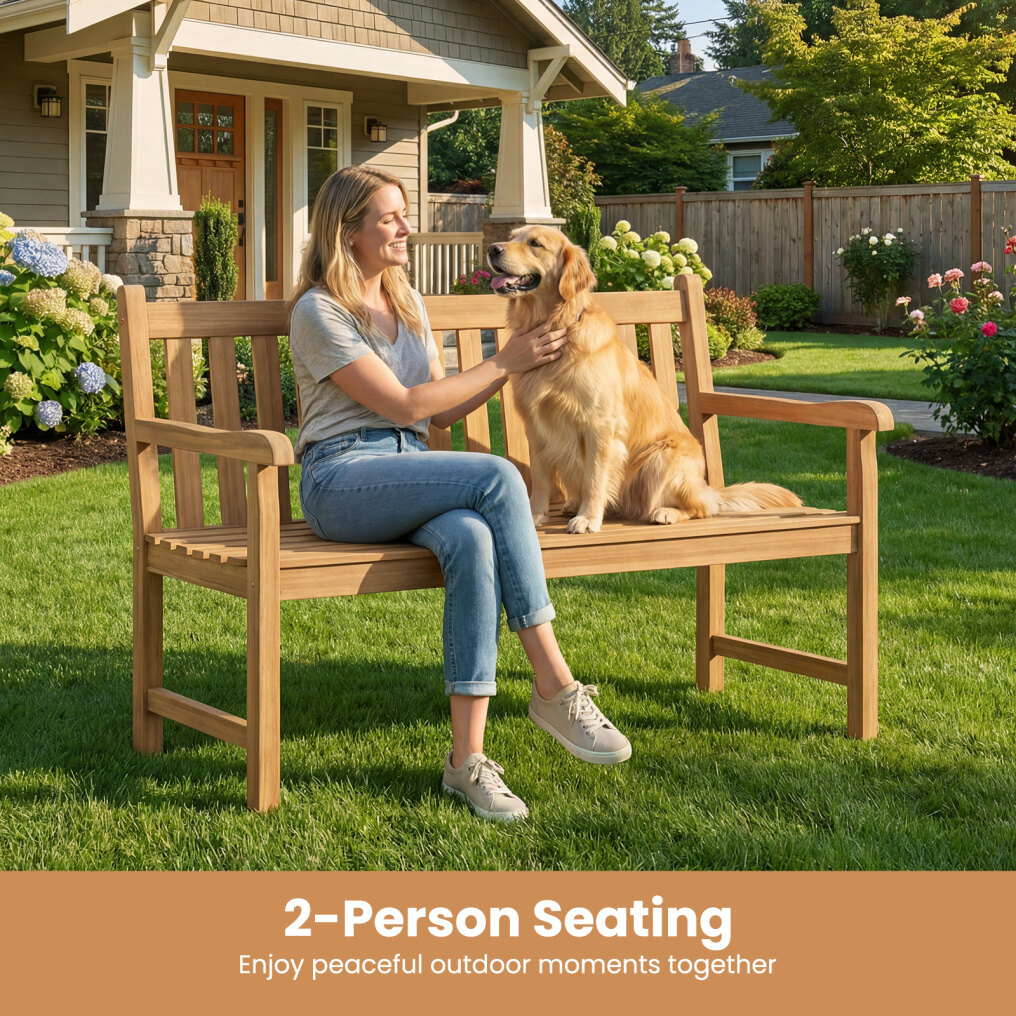 ● Spacious 3-Person Seating: Featuring an impressive overall width and a 60-inch seating area, this teak wood garden bench comfortably accommodates up to 3 adults without feeling crowded. Moreover, it is perfect for family gatherings, or you can simply stretch out to relax on your own.