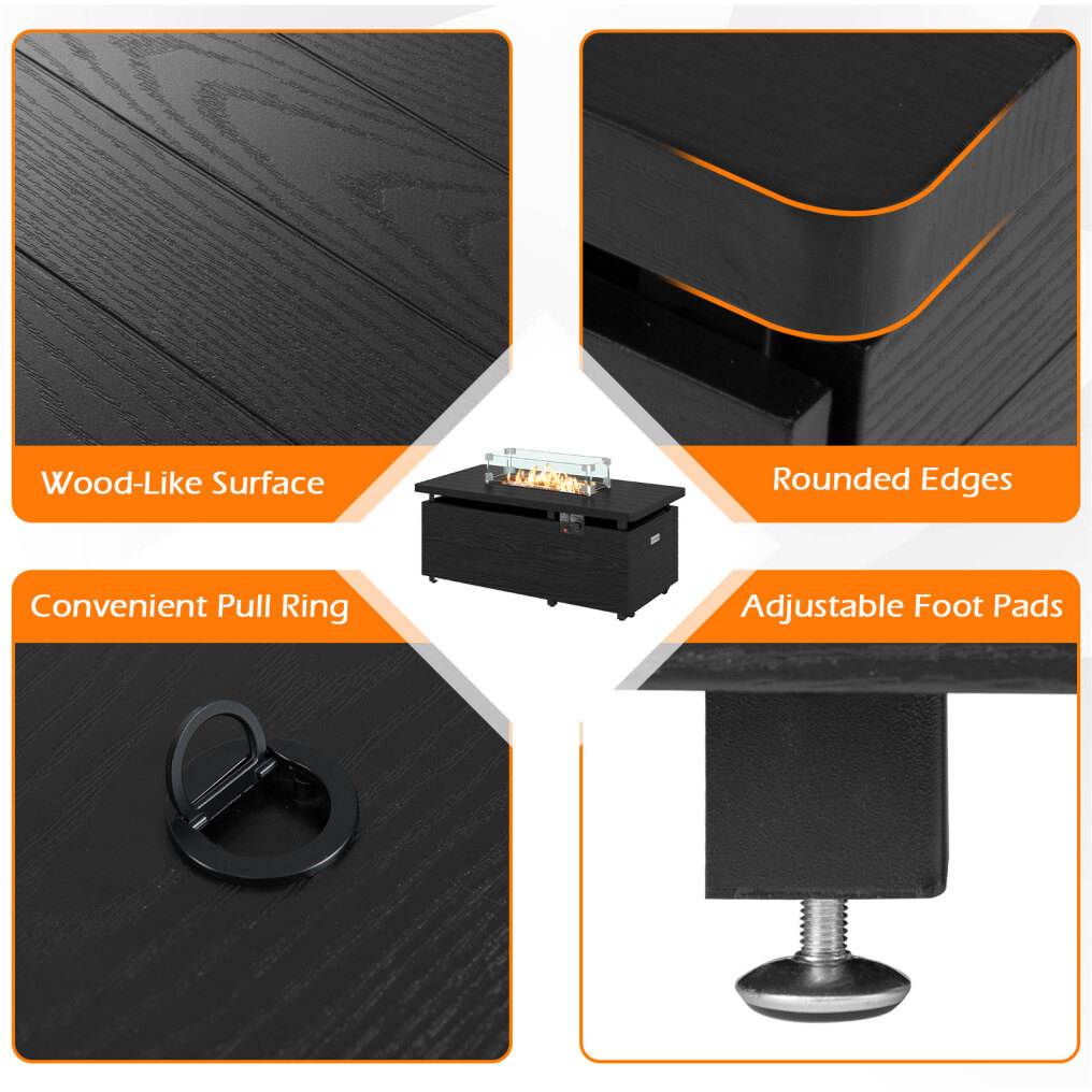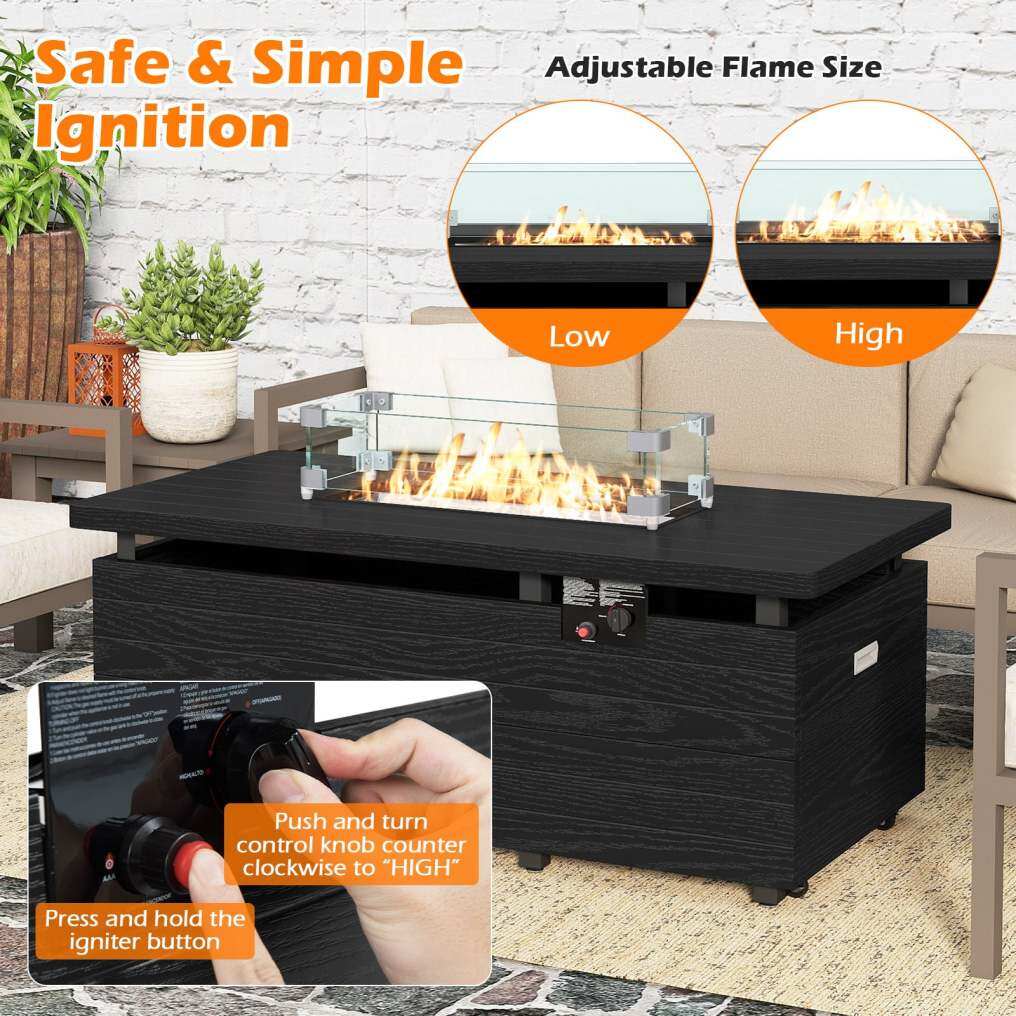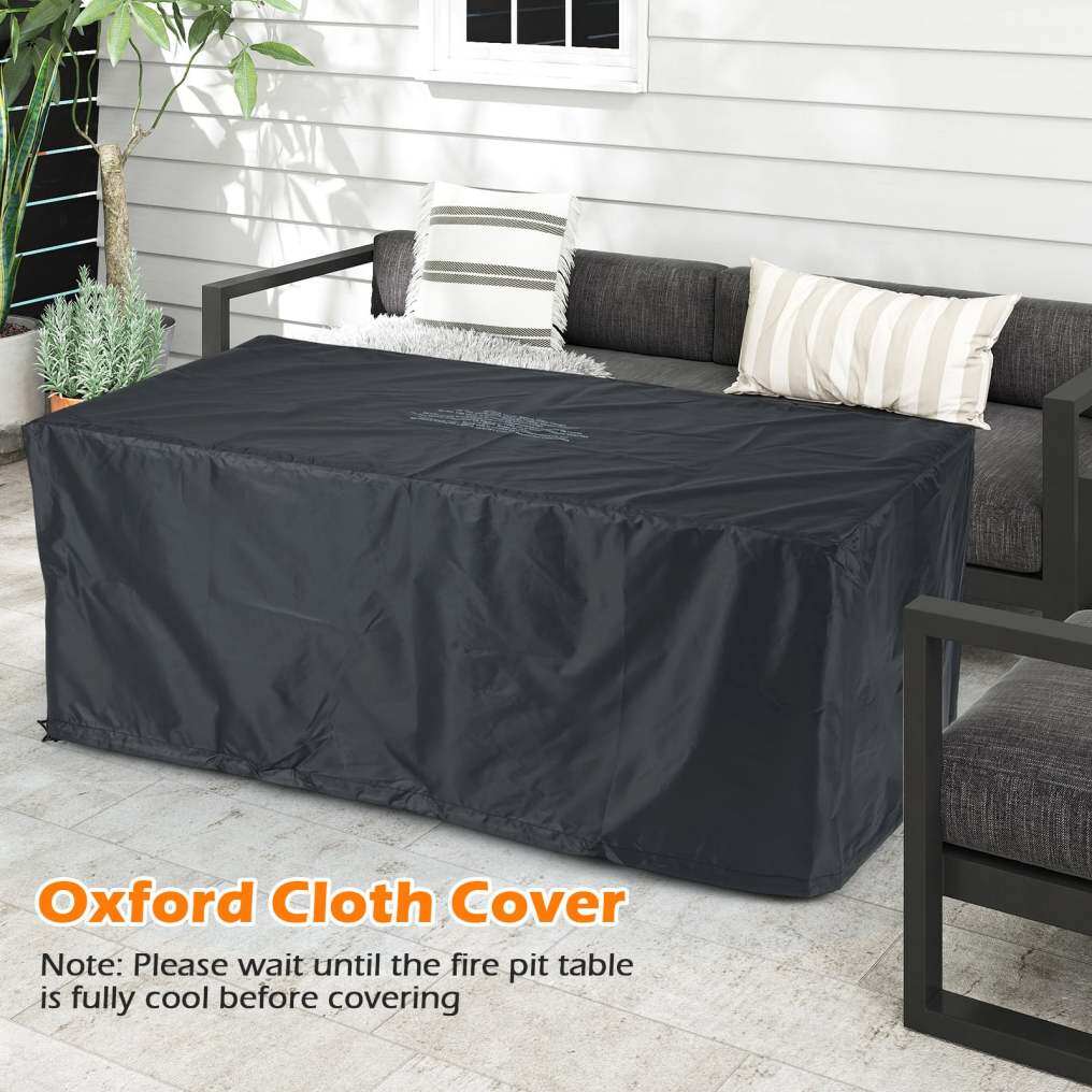● 2-in-1 Convertible Design: Serving dual purposes, this rectangular fire pit table effortlessly converts into a stylish coffee table with a removable lid facilitated by a convenient pull ring. The included oxford cloth cover offers protection when the gas fire pit is not in use. Note: Please wait until the fire pit table is fully cool before covering.