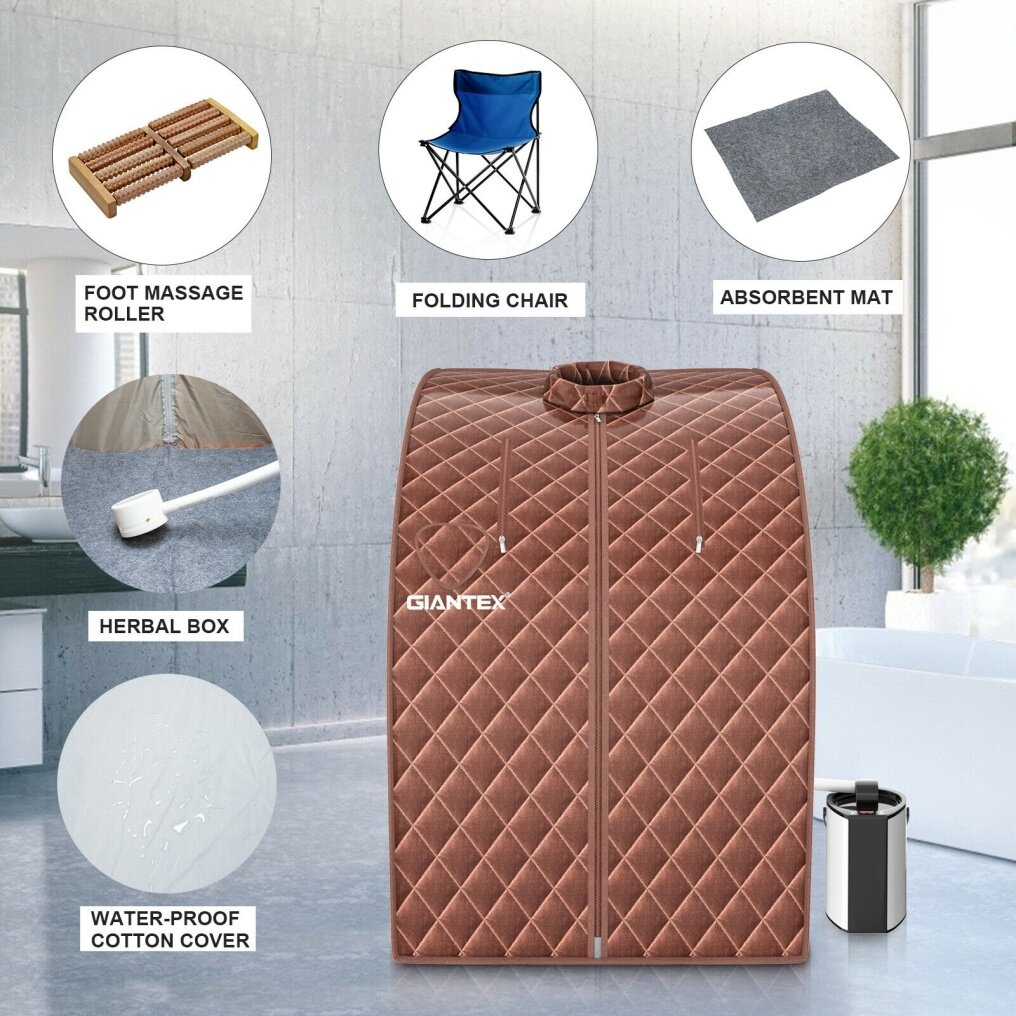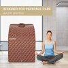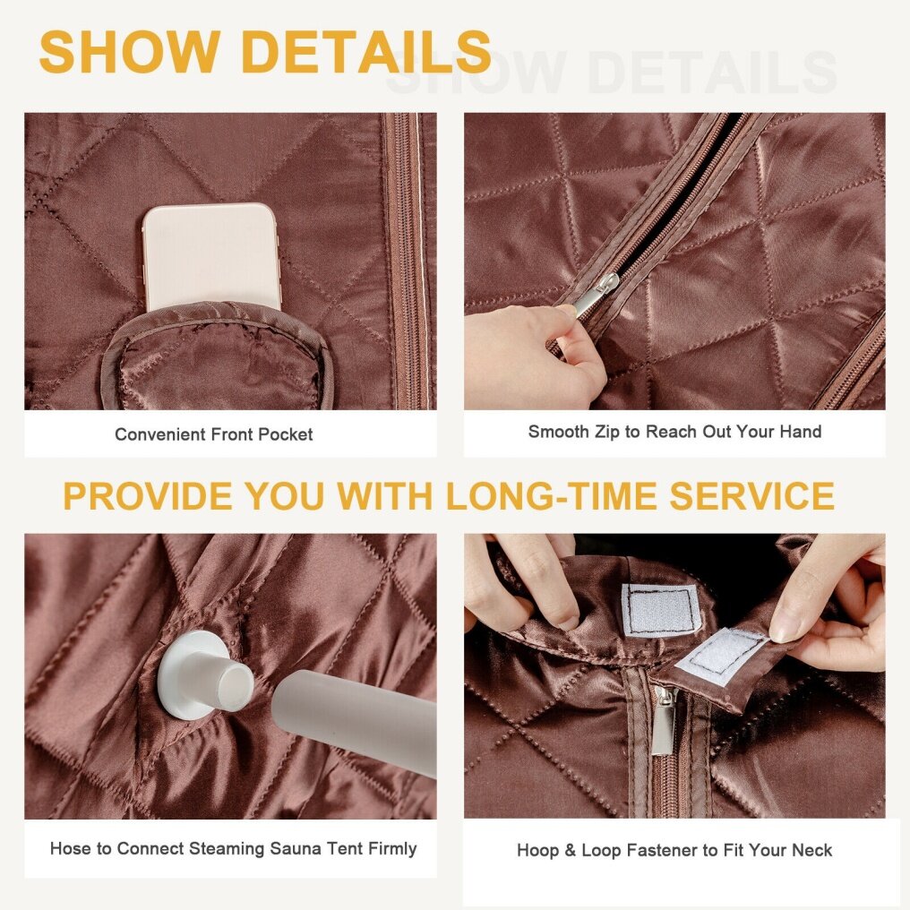 The sauna tent is made of waterproof fabric for easy maintenance and good heat retention. The two zipper openings are designed to free your hands to do other things while using the sauna. Thanks to 9-level temperature up to 149°F and 9 timer options (15mins-90mins), you can choose any temperature and time you like by the remote control. Featuring a tempered glass lid, this 3L steamer with atomization is explosion-proof and leak-proof. The detachable frame design makes it simple to enjoy your sauna anywhere you go. The attached folding chair can be used to solve the seat problem.