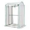 Our greenhouse is covered with a waterproof and durable PE cover that protects your plants from wind and rain for indoor and outdoor use. The frame consists of rust-resistant electrophoretic steel pipes and the interior is reinforced by plastic connectors for overall stability. In addition, 4 ground stakes are provided to help secure the greenhouse to the ground. And the extended edges of the cover can be placed with stones to improve the windproof performance of the greenhouse. In addition, our greenhouse has 2 zippered roll-up doors, provide easy access for you to take care the plants. In addition, our greenhouse has a unique design with air holes on the top and sides that can be inserted into poles, suitable for planting some climbing plants. And we offer 4 grid racks, perfect for storing flower pots. With clear instructions and installation videos, the greenhouse is not difficult to assemble.