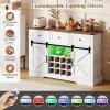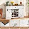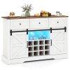 52 Inches Wine Bar Cabinet with LED Lights and Sliding Barn Doors-White