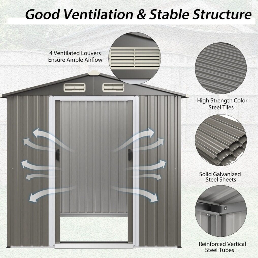 6 x 4 Feet Galvanized Steel Storage Shed with Lockable Sliding Doors-Gray