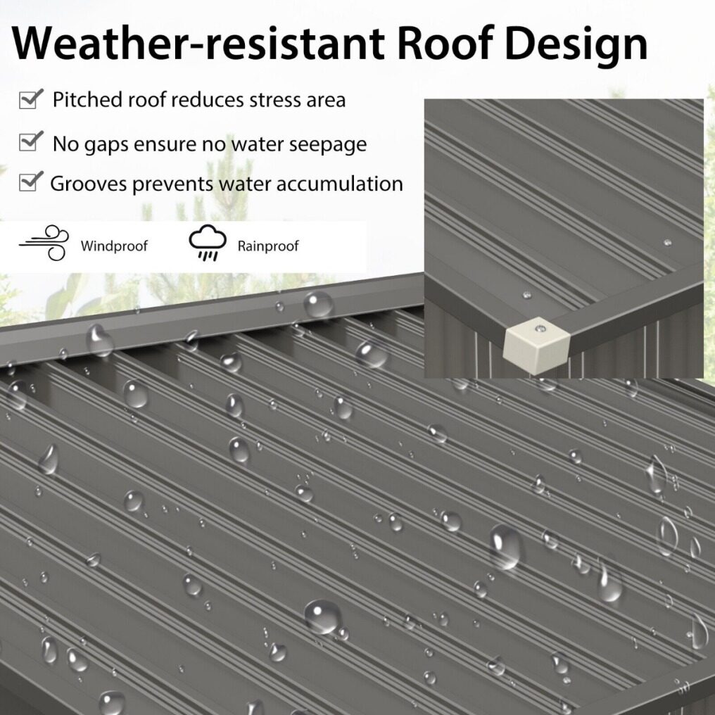 ● Weather-resistant and Sturdy Frame: To ensure superior stability and wind resistance, this outdoor tool room is made of solid and anti-rust galvanized metal. On top of that, the tool room is equipped with a vertical bar on the inside of all four sides to reinforce the frame. Besides, the roof is made of weather-resistant color steel tiles to ensure longer companionship.