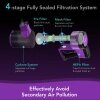 - 4-stage fully sealed filtration system effectively clearing bacteria and dust