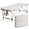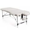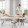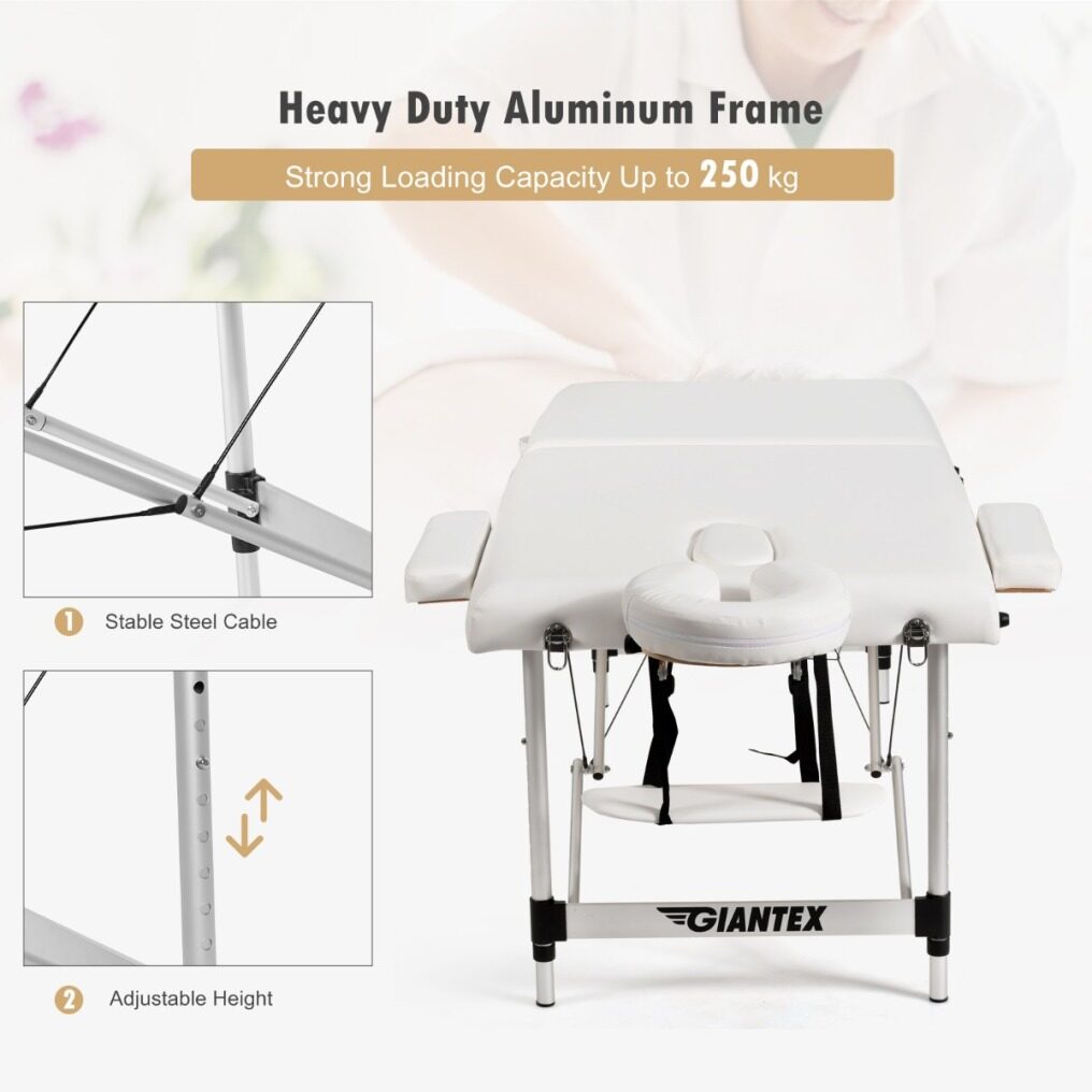 Sturdy Construction: Made of premium aluminium alloy frame and support steel cables, this folding massage table ensures long service time and comes with strong loading capacity up to 550lbs. In addition, the non-slip foot pads prevent sliding during massage while protecting the floor from scratches.