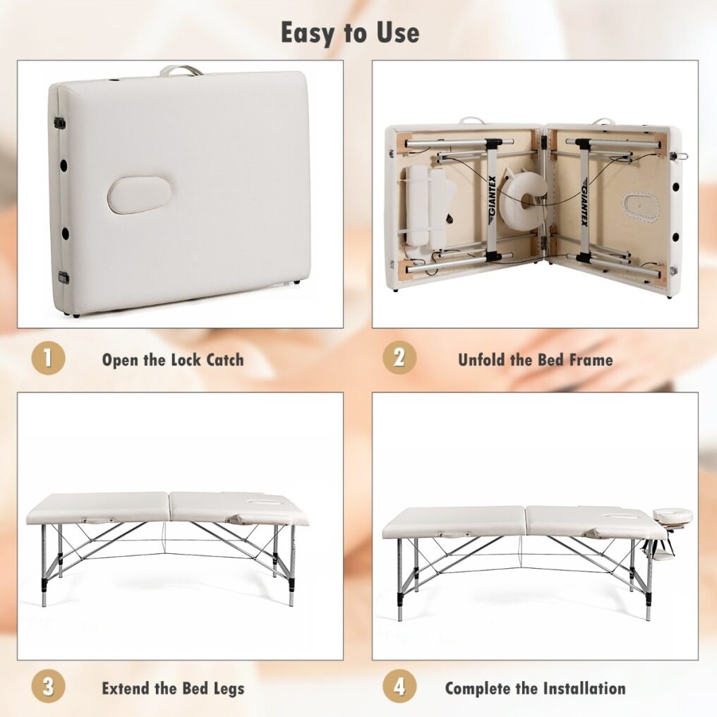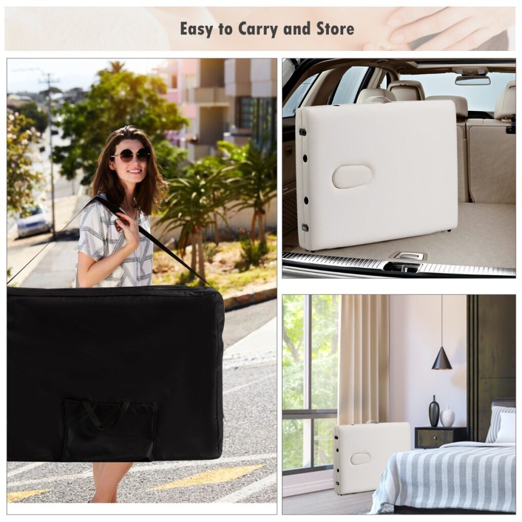 Foldable & Portable Design: Thanks to its humanized design, this massage bed can be folded into a carrying case with chrome clasps to store it with ease. Besides, the spa bed with the lightweight design and included oxford fabric carrying bag allow therapists to carry it easily.
