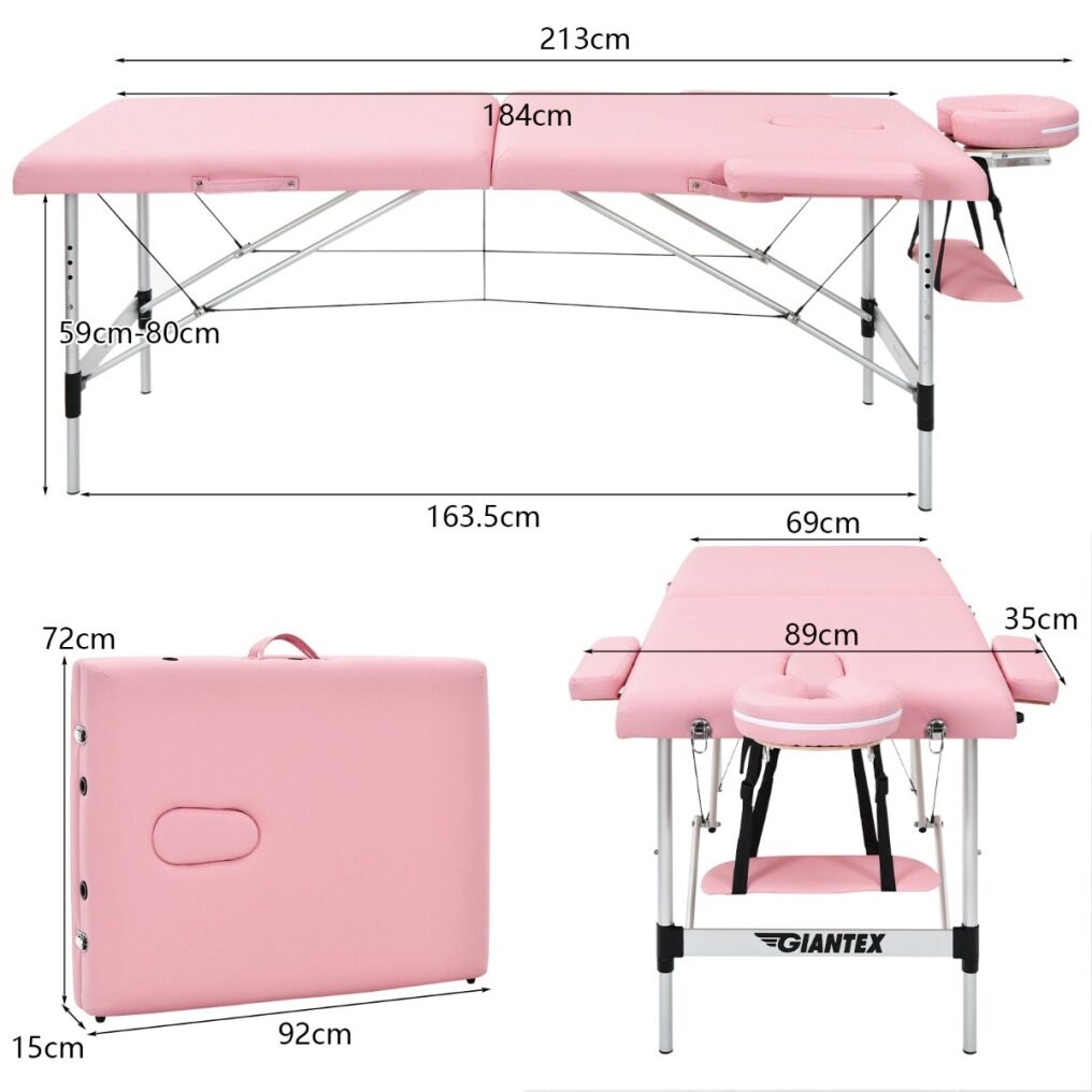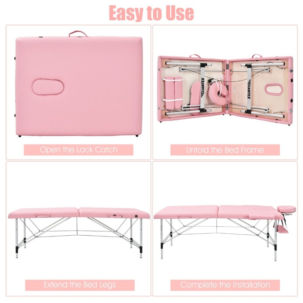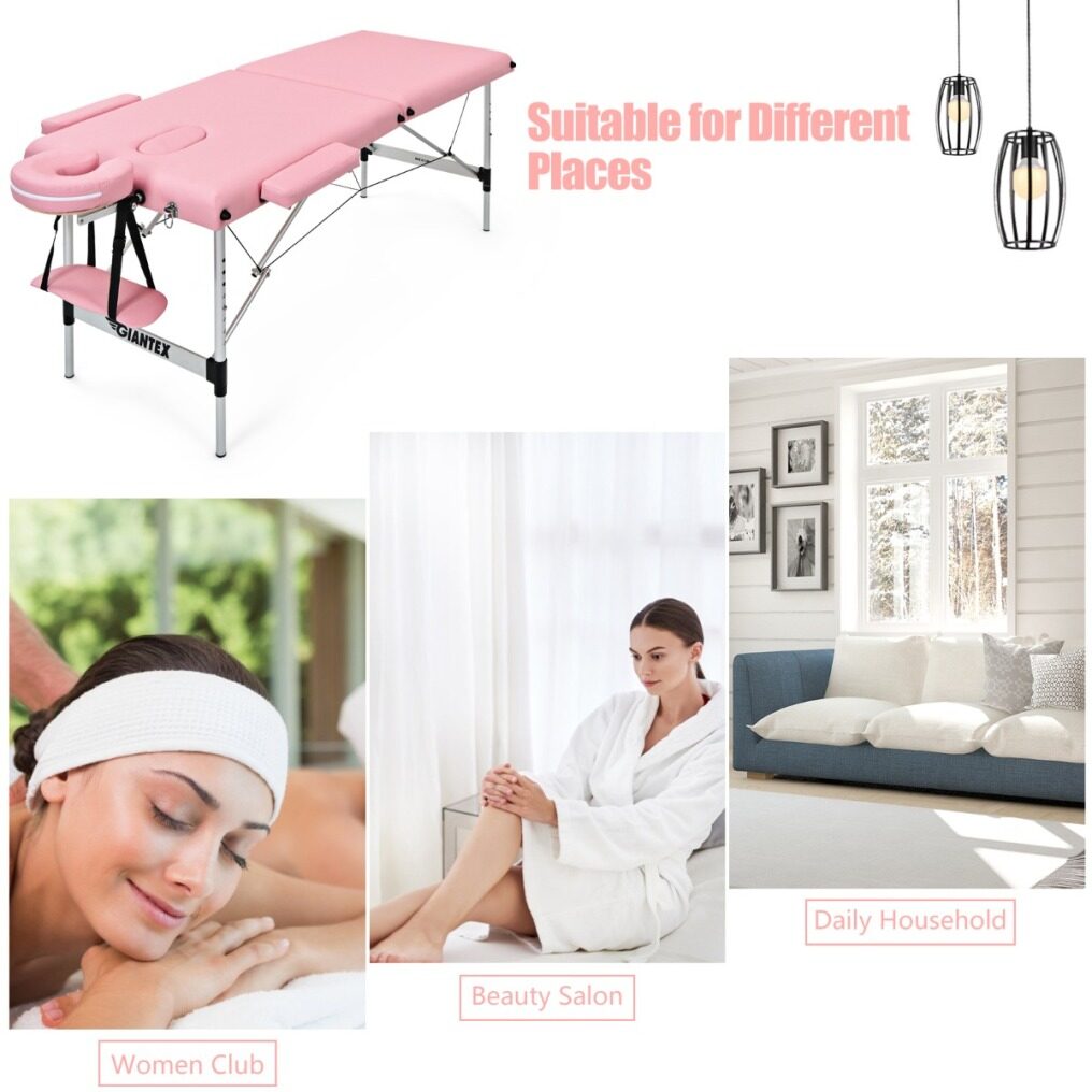 The height and headrest can be adjusted to fit therapists of different heights and meet various needs. Besides, the foldable and lightweight design allows you to carry this spa bed with ease and store it easily. The included carrying bag gives extra convenience. Constructed of premium aluminum alloy frame with support steel cables, this high quality massage table is durable and stable to hold up to 250kg. And the high density sponge and breathable PVC leather offer maximum comfort and clean it easily.