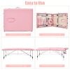 Sturdy Construction: Made of premium aluminium alloy frame and support steel cables, this folding massage table ensures long service time and comes with strong loading capacity up to 550lbs. In addition, the non-slip foot pads prevent sliding during massage while protecting the floor from scratches.