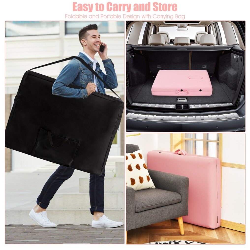 Foldable & Portable Design: Thanks to its humanized design, this massage bed can be folded into a carrying case with chrome clasps to store it with ease. Besides, the spa bed with the lightweight design and included oxford fabric carrying bag allow therapists to carry it easily.
