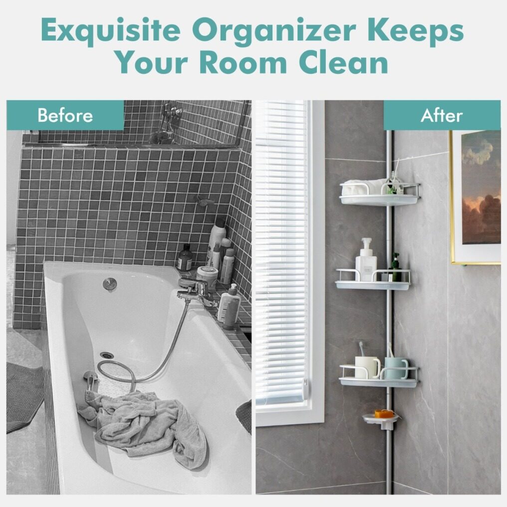 Height Adjustable Design: The shower caddy is built with an inside tension pole which allows you easily adjust the height according to your situation. Also, the flexible baskets and trays are free to adjust the positions for meeting your different needs or adapting to people of different heights.