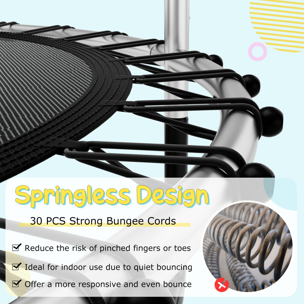 ● Safe No-Gap & Springless Design: The jumping mat with sewn on safety pad offers a safer and larger bouncing area. 30 pcs strong bungee cords offer a more responsive and even bounce, reduce the risk of pinched fingers or toes, and is ideal for indoor use due to quiet bouncing.