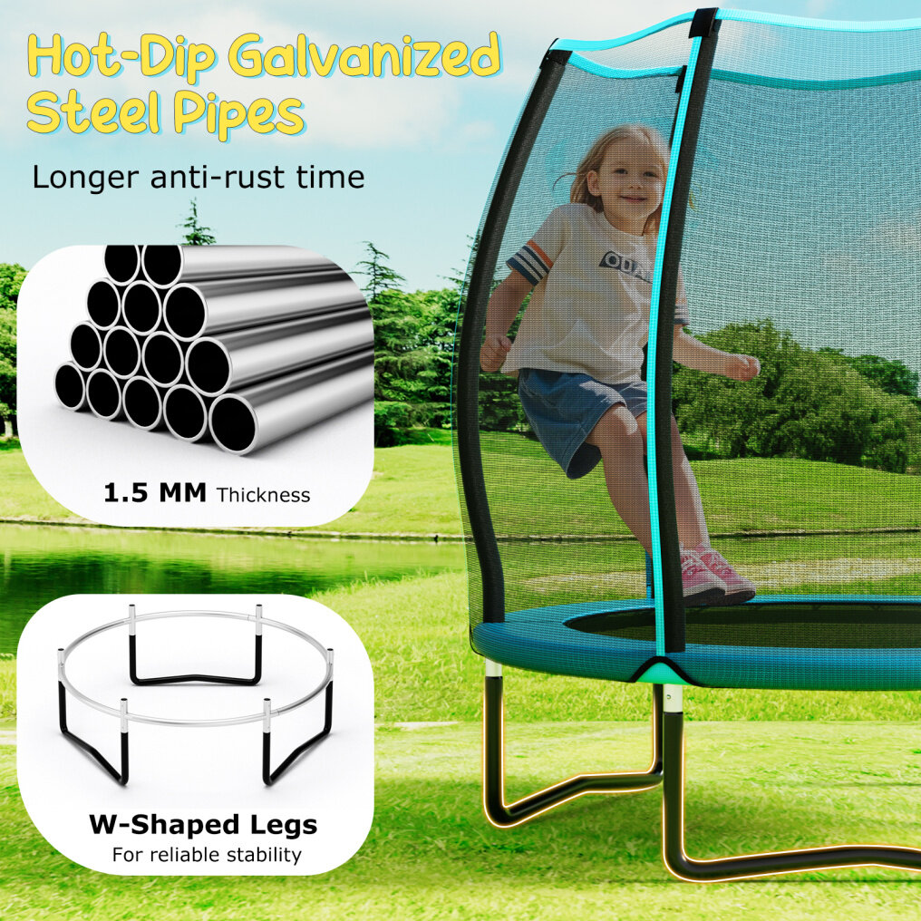 ● Long-Lasting Materials: Constructed from hot-dip galvanized steel pipes with 1.5 mm thickness, this trampoline boasts longer anti-rust time. The high-resilient jumping mat has passed 5000-hour sunproof test and 100,000-bounce test, making it ideal for indoor or outdoor use.