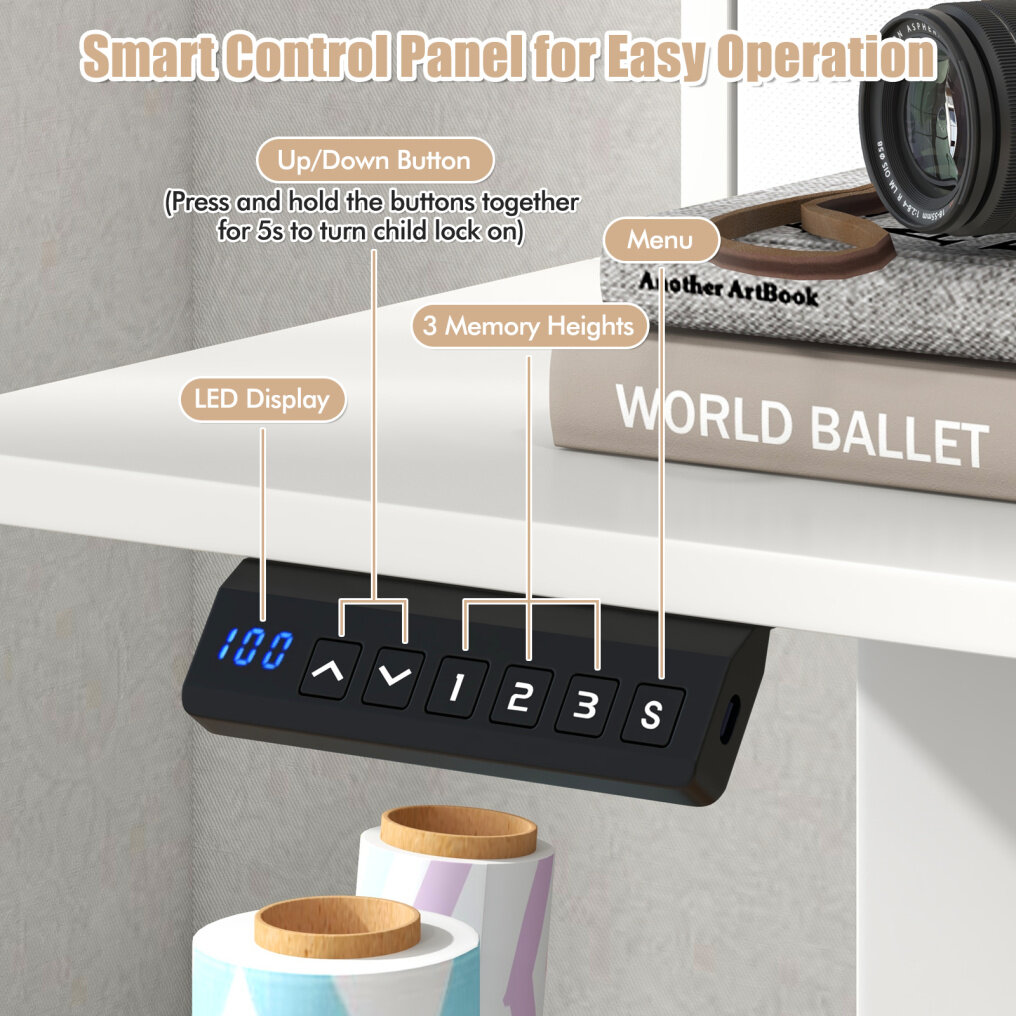 ● Easy Control and Smooth Lifting: The smart control panel makes operation a breeze while the lifting process is quiet and smooth to avoid disruptions. Besides, 3 memory height settings can be saved in advance, thus conveniently achieving your ideal height and position anytime.