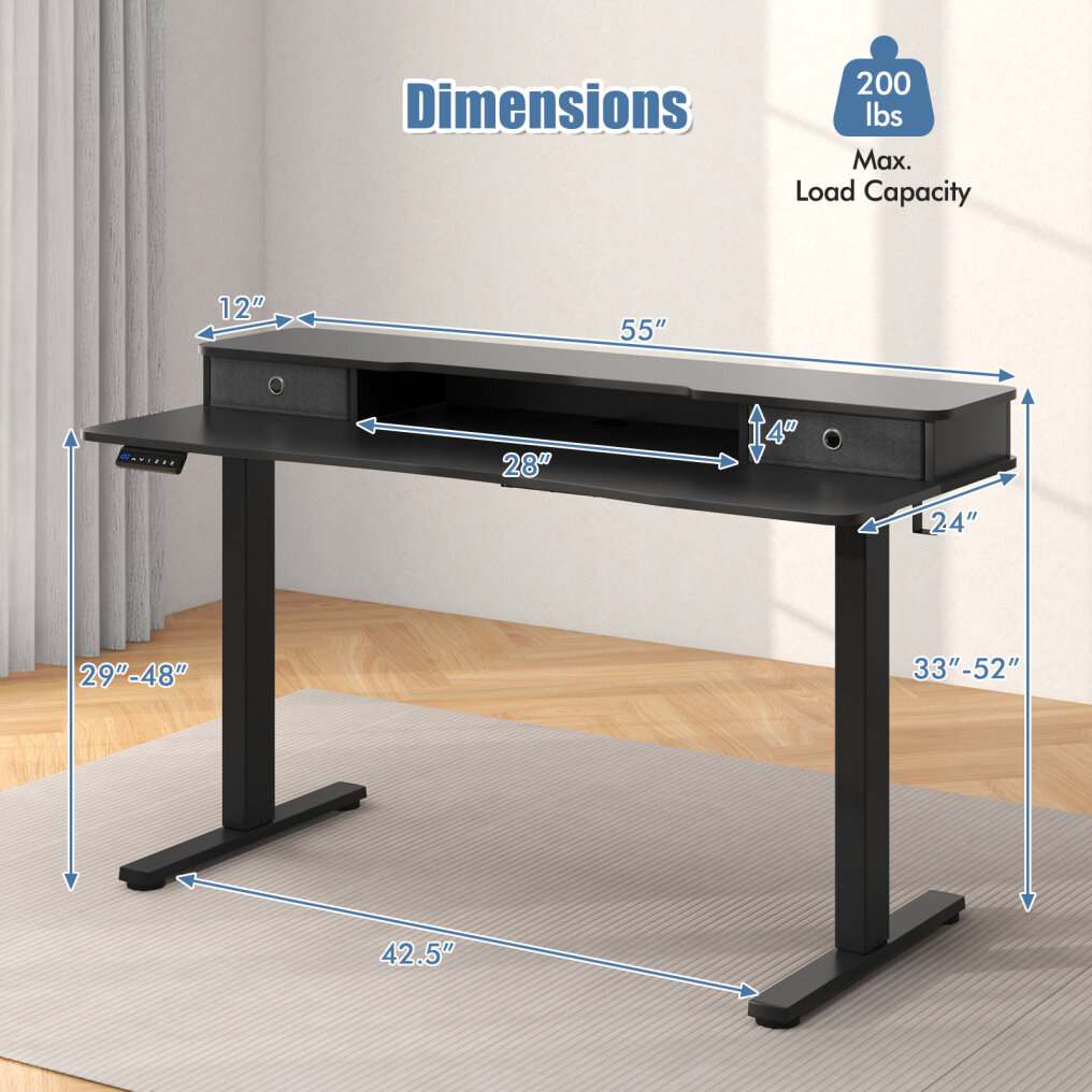 ● Enhanced Workspace Organization: 2 fabric drawers, an open compartment, and 2 hanging hooks offer ample storage for office supplies. Featuring a cable management hole and tray, this electric desk helps you keep a neat and organized workspace by concealing cables and cords.