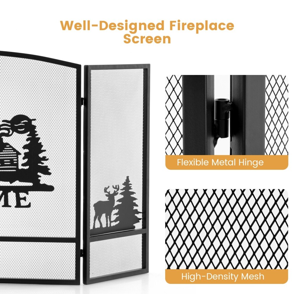 ● Forest Moose Decorative Screen: This fireplace fence features appealing and vivid patterns: a mountain hut on the middle panel and forest deer on the 2 side panels. The attractive look will make the fireplace screen a perfect home decoration.