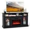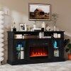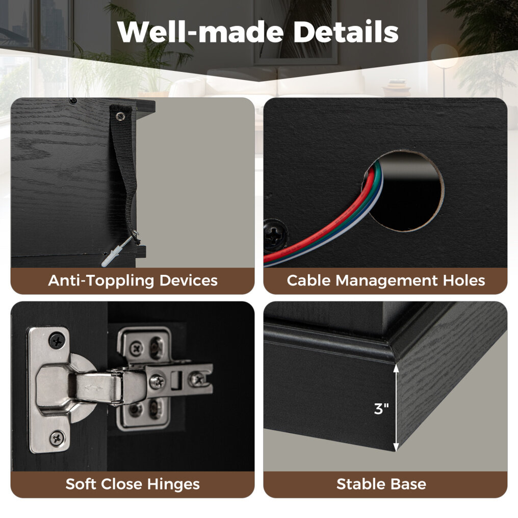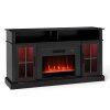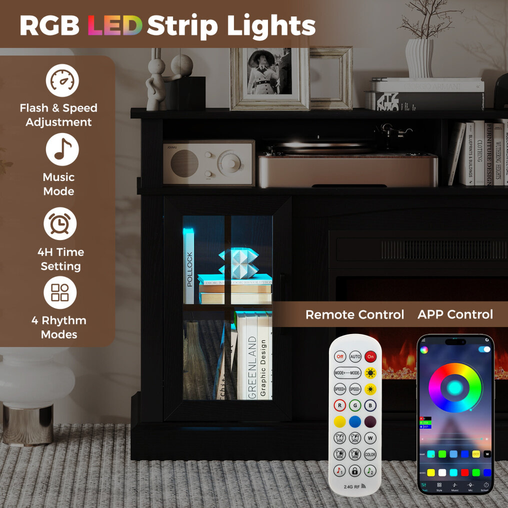 58 Inch Fireplace TV Stand with LED Lights with Storage Cabinets and Glass Doors-Black