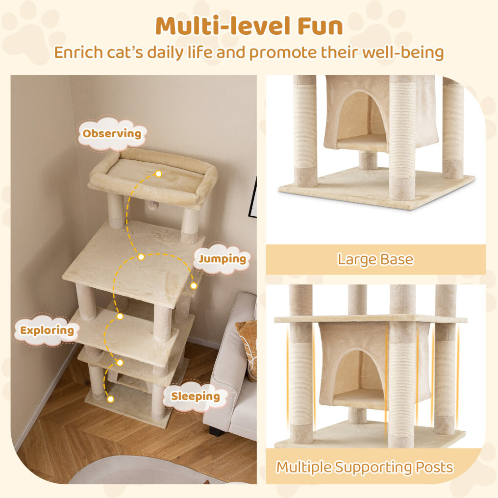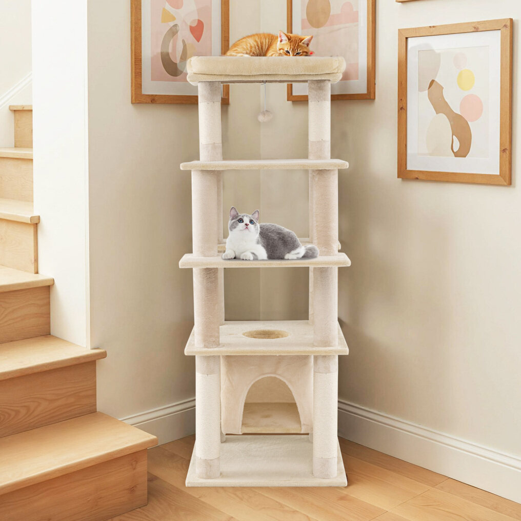 ● Multi-level Design: The large cat tree features multiple platforms and all-in-one design that allow cats to take a rest, climb, scratch or jump. Thereby, it will promote healthy exercise and mental stimulation, ensuring your cat stays active and happy.