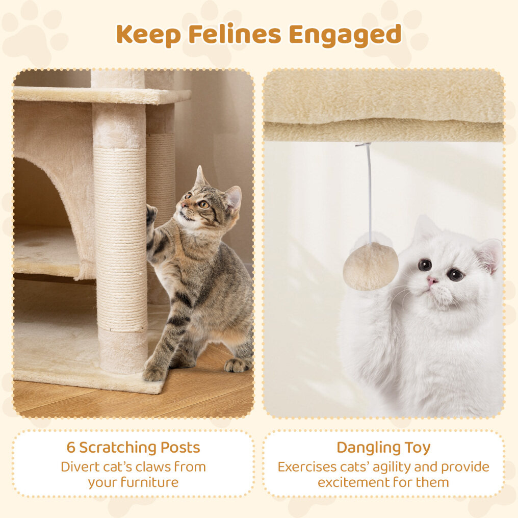 ● Keep Cats Engaged & Entertained: The cat activity center includes multiple sturdy scratching posts to encourage healthy scratching behaviors and protect your furniture. In addition, an interactive hanging ball will delight your cats and release their hunting instincts.
