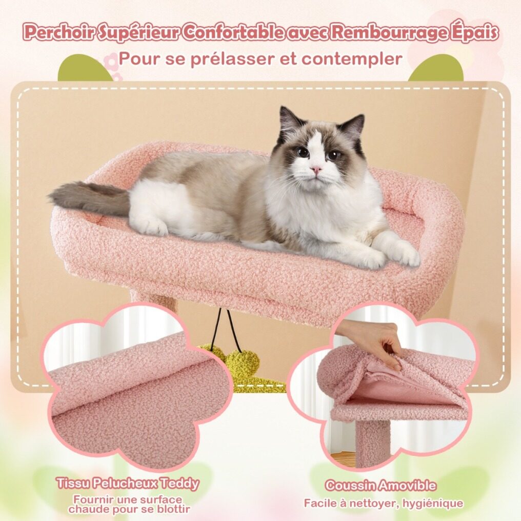 ● Comfy Lying Experience: All platforms are covered in soft teddy plush fabric, providing a warm surface for snuggling up on. And padded cushion on the top perch is detachable and washable, ensuring a clean and hygienic environment for both your cat and your home.