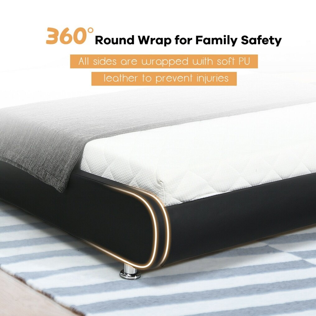 ● Stable Frame and Soft Edge: Made of premium solid wood slats, this full-size bed features outstanding toughness and bending resistance for long-term use. Moreover, this bed frame comes with sturdy powder-coated feet to improve weight capacity. Besides, all sides are wrapped with soft PU leather to prevent injuries, thus ensuring family safety.