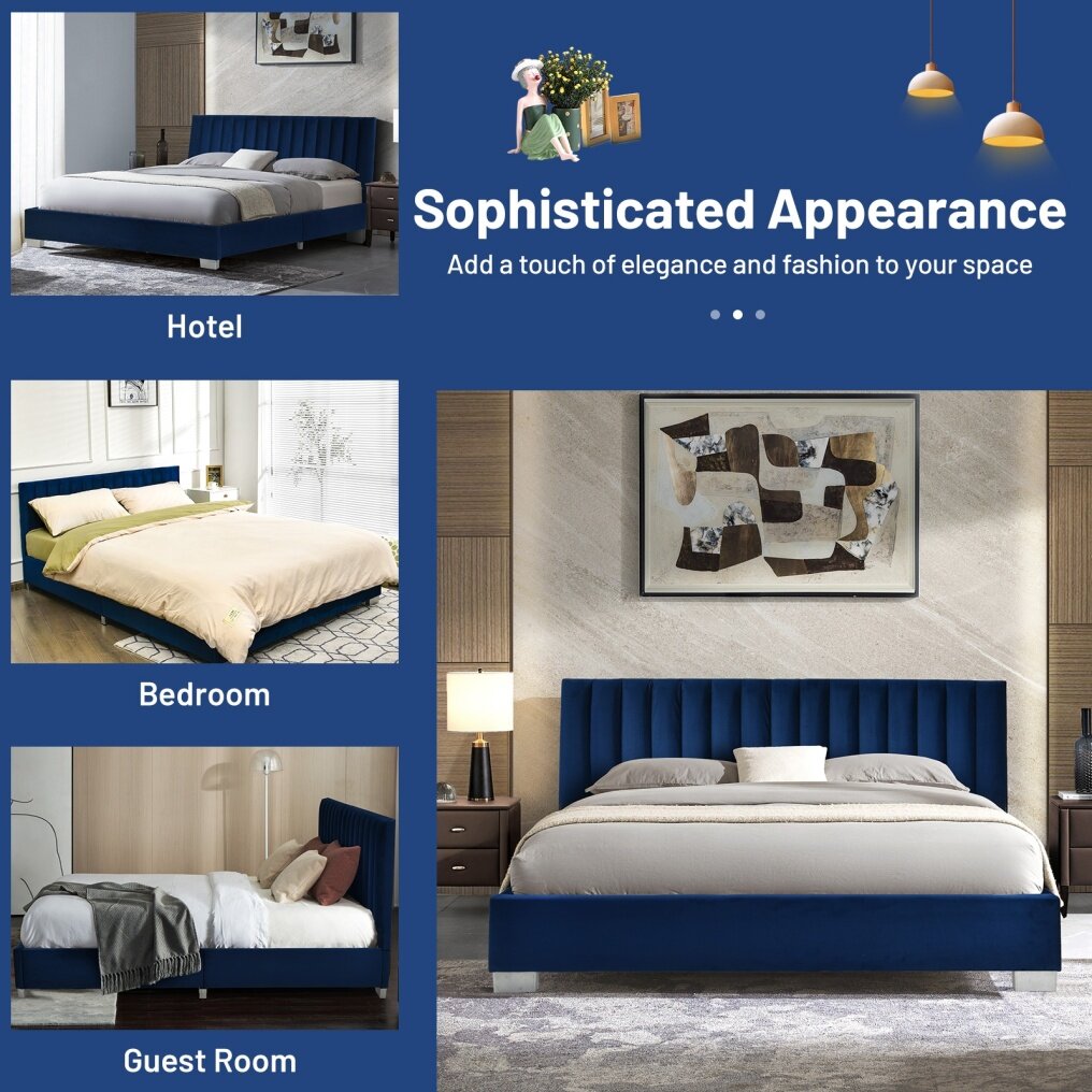 This bed frame with sturdy wooden slats brings a safe and comfortable sleeping environment for you and your guest. Thanks to the softly upholstered bed frame, you can enjoy your sweet dream after long time working. What's more, the high quality slats keep you away from annoying squeak sand give you a quiet rest environment. You can quickly finish the installation without adding. This minimalist designed bed frame can be a nice addition to your bedroom, guestroom and hotel.