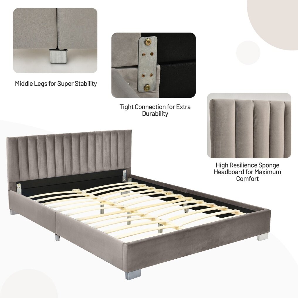 This bed frame with sturdy wooden slats brings a safe and comfortable sleeping environment for you and your guest. Thanks to the softly upholstered bed frame, you can enjoy your sweet dream after long time working. What's more, the high quality slats keep you away from annoying squeak sand give you a quiet rest environment. You can quickly finish the installation without adding. This minimalist designed bed frame can be a nice addition to your bedroom, guestroom and hotel.