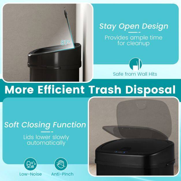 Keep-open and soft-close function: Enjoy stress-free tidying up with an 87° keep-open angle that allows uninterrupted access without bumping against the wall. The bin also features a quiet, anti-pinch soft-close lid for safe and peaceful operation.