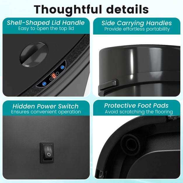 Versatile functionality and high-quality details: Ideal for home, office, living room, or kitchen, this touchless waste bin integrates seamlessly with side handles for easy movement and repositioning. Protective feet prevent scratches on your floor.