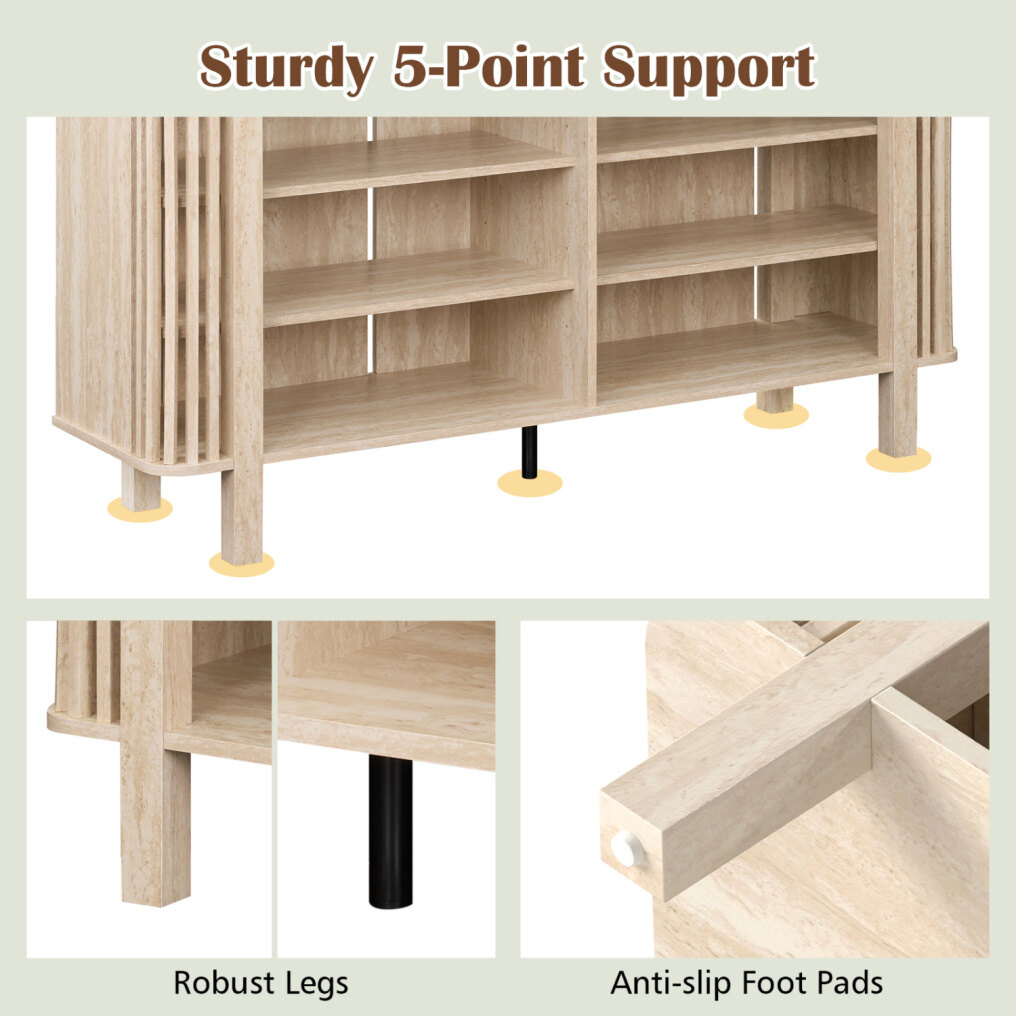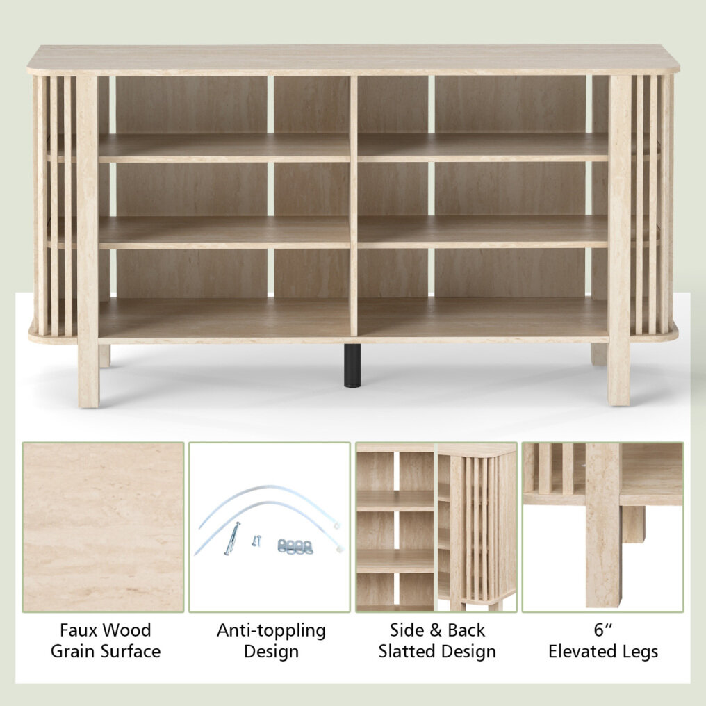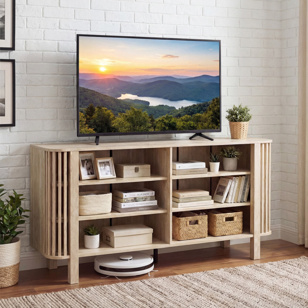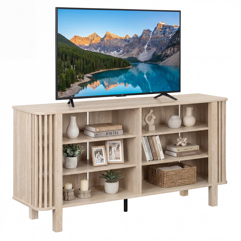 ● Beautiful TV Cabinet with Slats: Thanks to faux wood grains, the 59" TV stand adds texture and charm to your living space, fitting well with different decorations. Additionally, unique slatted design makes it more attractive.